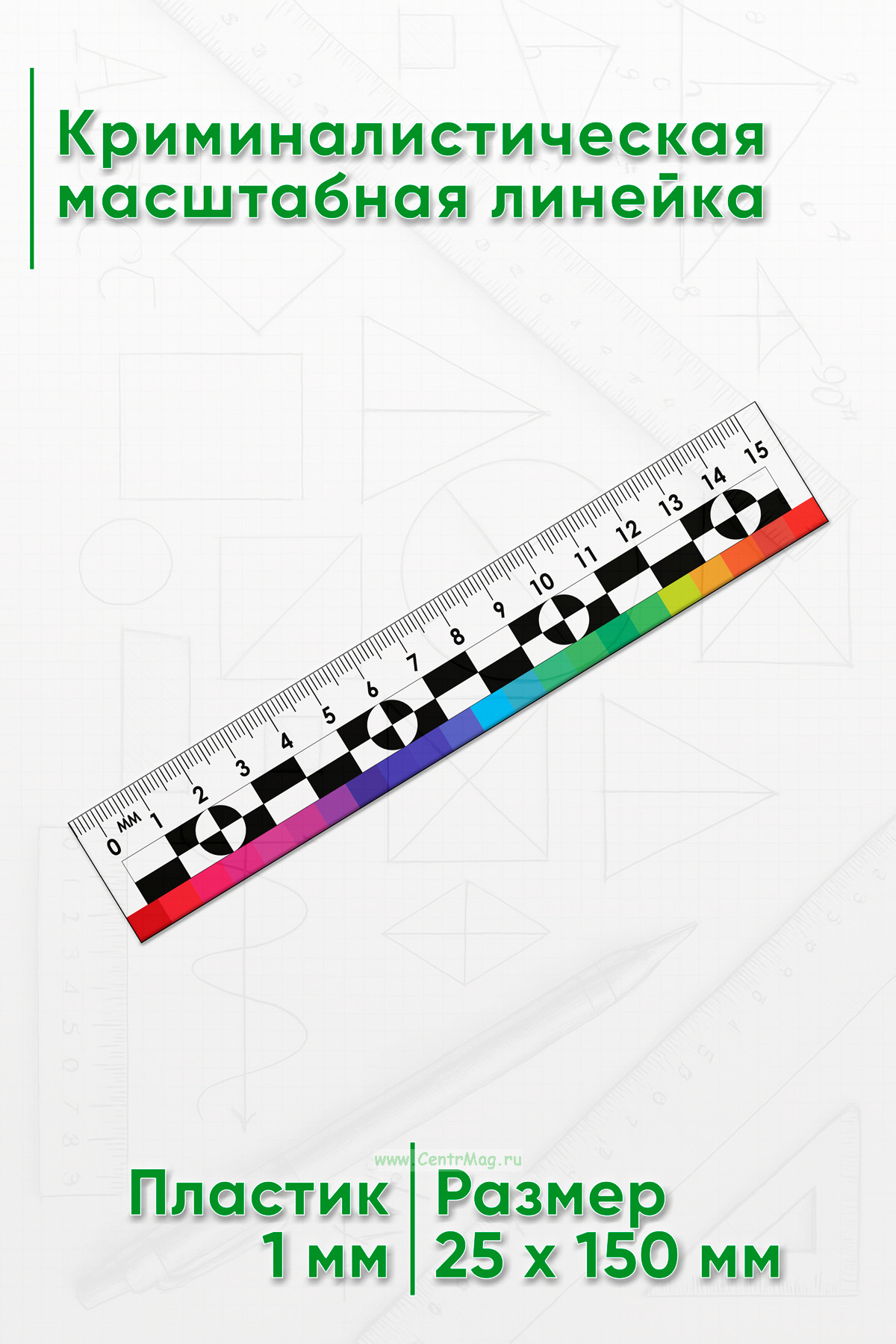 Криминалистическая масштабная линейка 15 см (цветная)