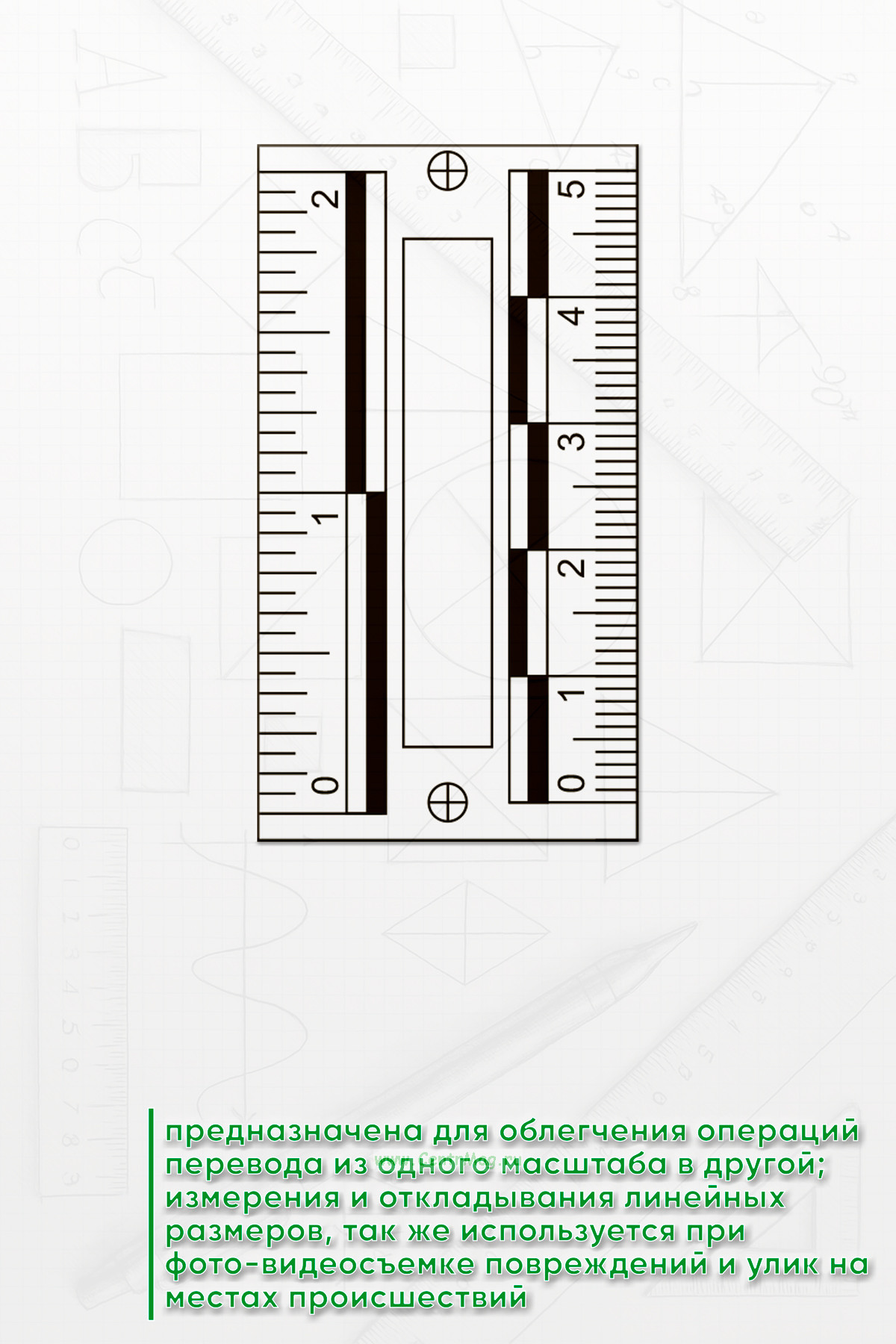 Линейка предназначена для облегчения операций перевода из одного масштаба в другой; измерения и откладывания линейных размеров, так же используется при фото-видеосъемке повреждений и улик на местах происшествий