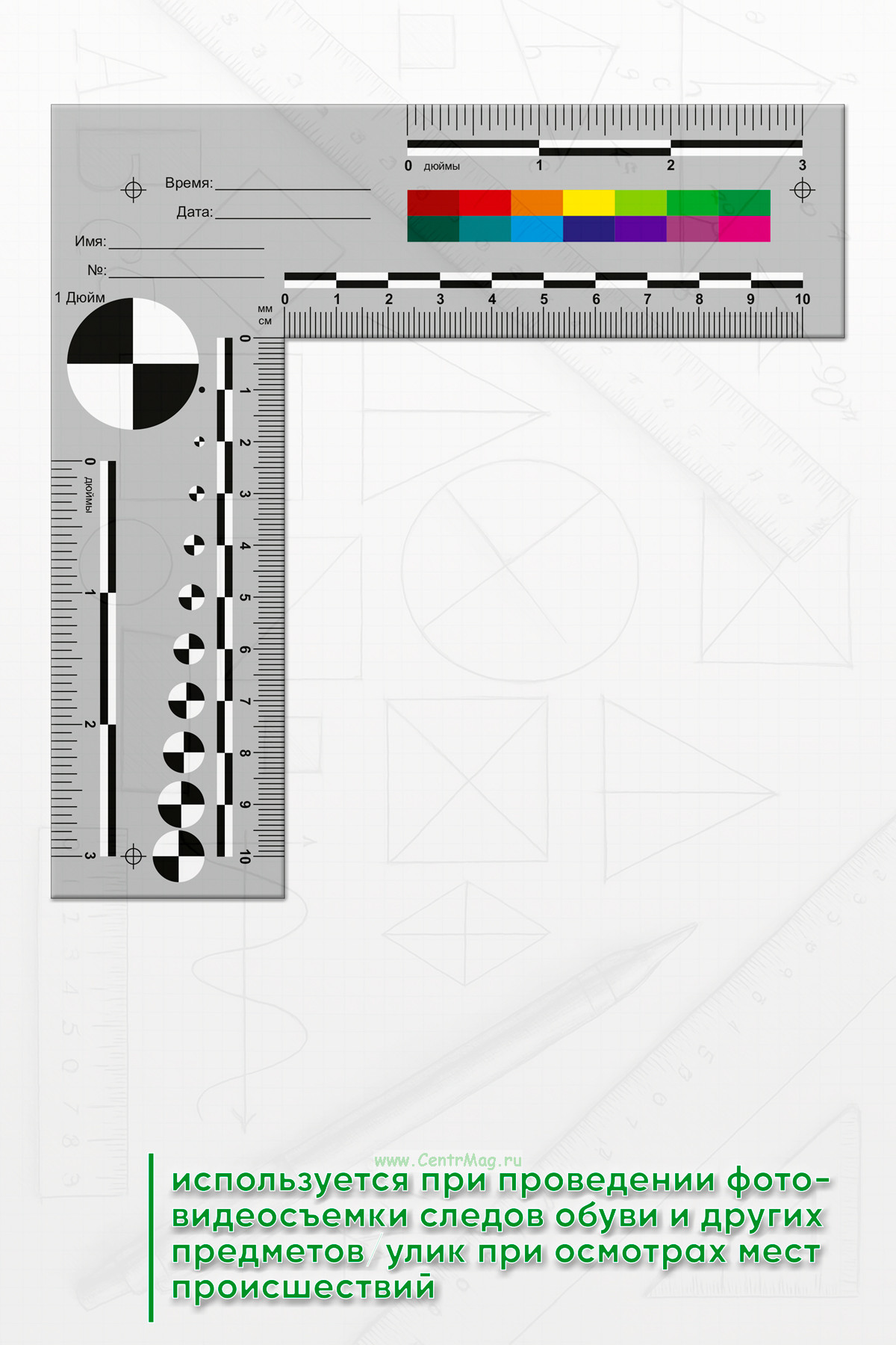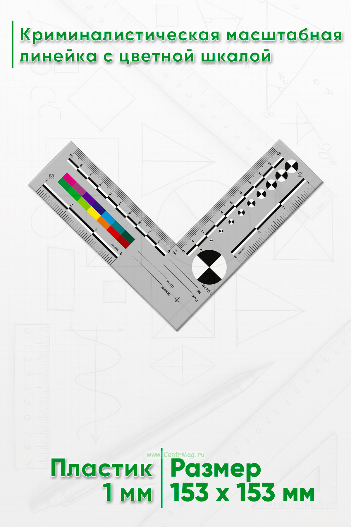 Криминалистическая масштабная линейка с цветной шкалой, угольник 30х15 см (12х5”) (580 руб.)