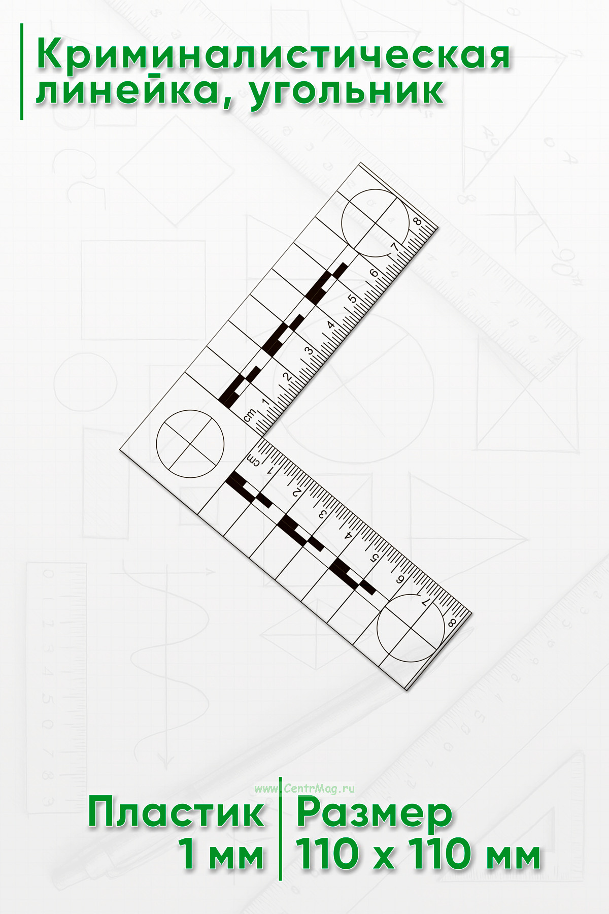 Криминалистическая масштабная линейка, угольник 8х8 см.