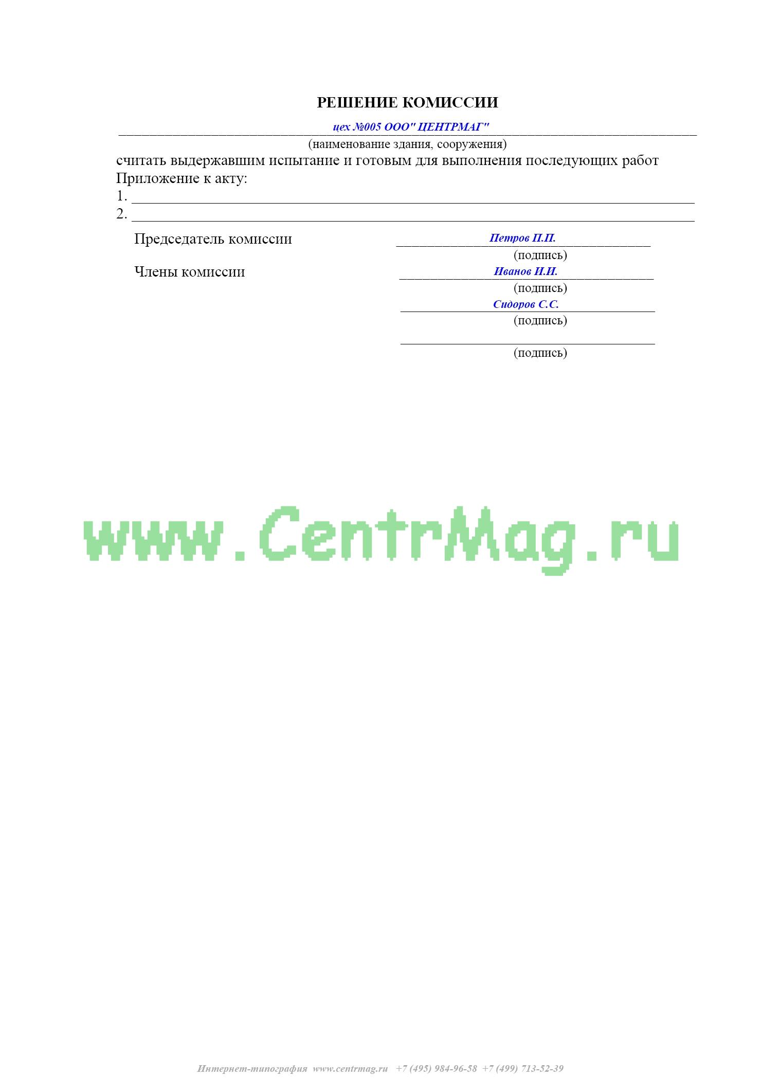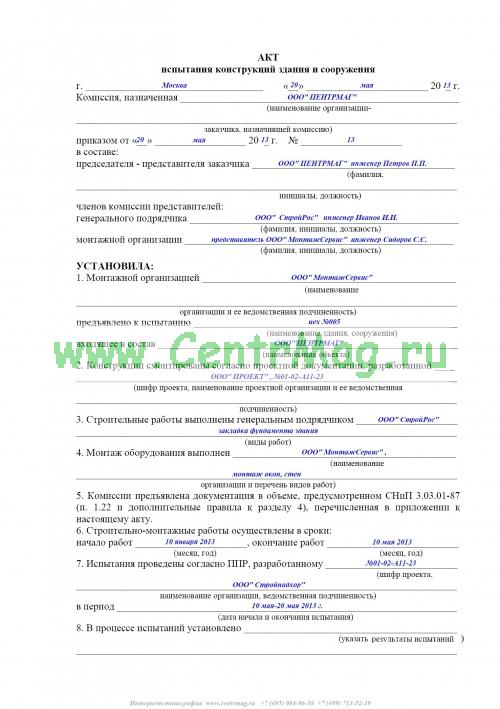 Образец и пример заполнения акта испытания конструкций здания и сооружения