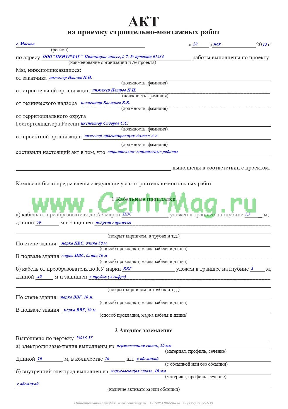 Образец и пример заполнения акта на приемку строительно-монтажных работ
