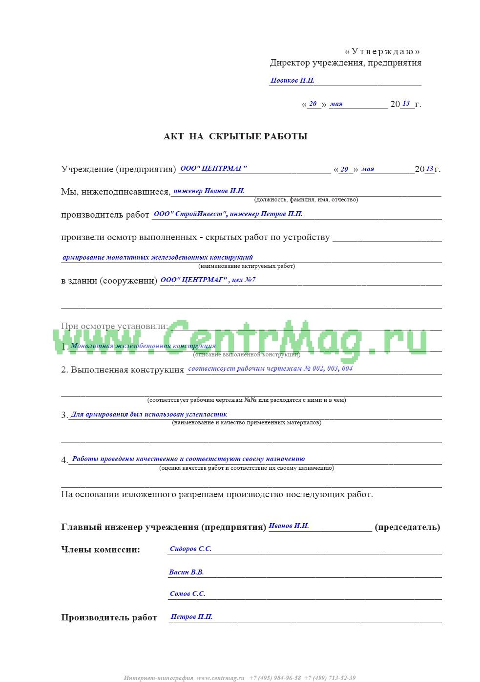 Вы можете бесплатно скачать (скачать zip) этот бланк, заполнить соответствующие поля и отправить его на почту info@centrmag.ru для последущей печати.