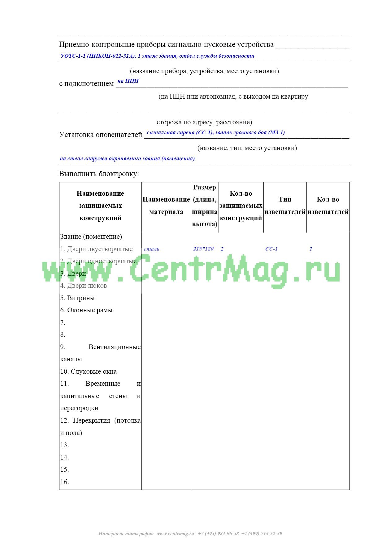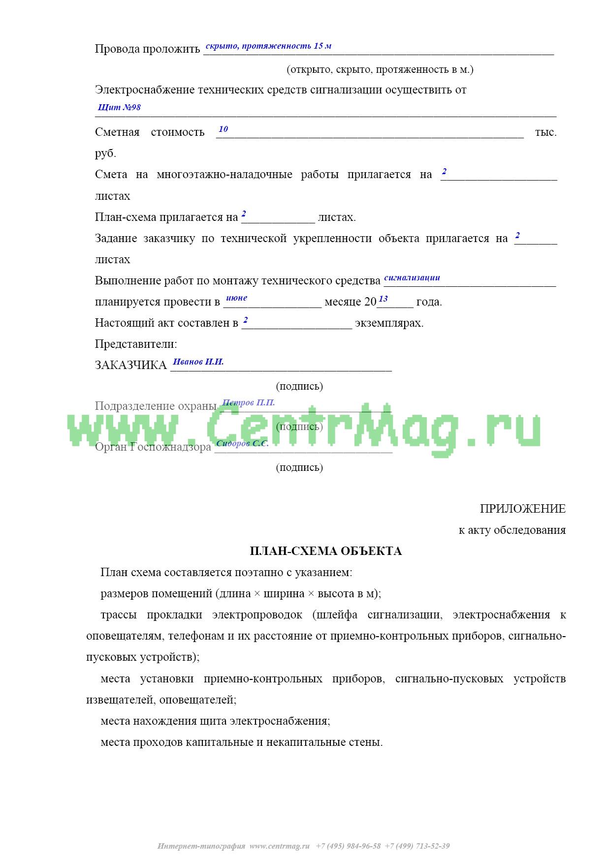 Образец и пример заполнения акта обследования (системы и комплексы охранной, пожарной сигнализации)