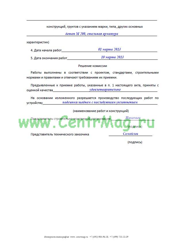 Образец и пример заполнения акта освидетельствования скрытых работ (форма)