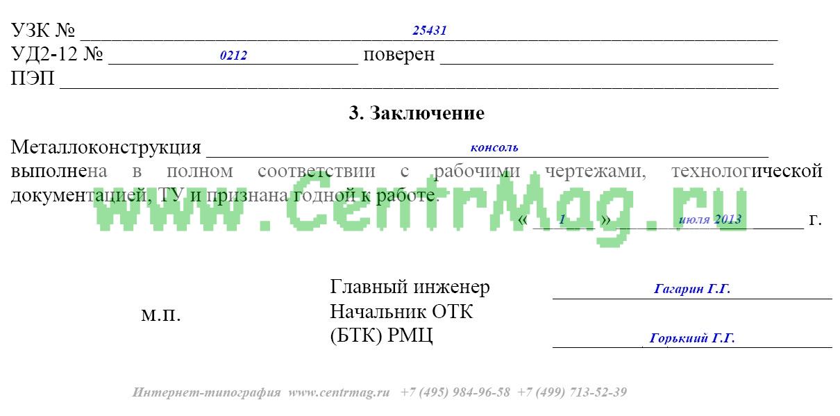 Образец и пример заполнения акта приемки тупиковых упоров после сборки и сварочных работ