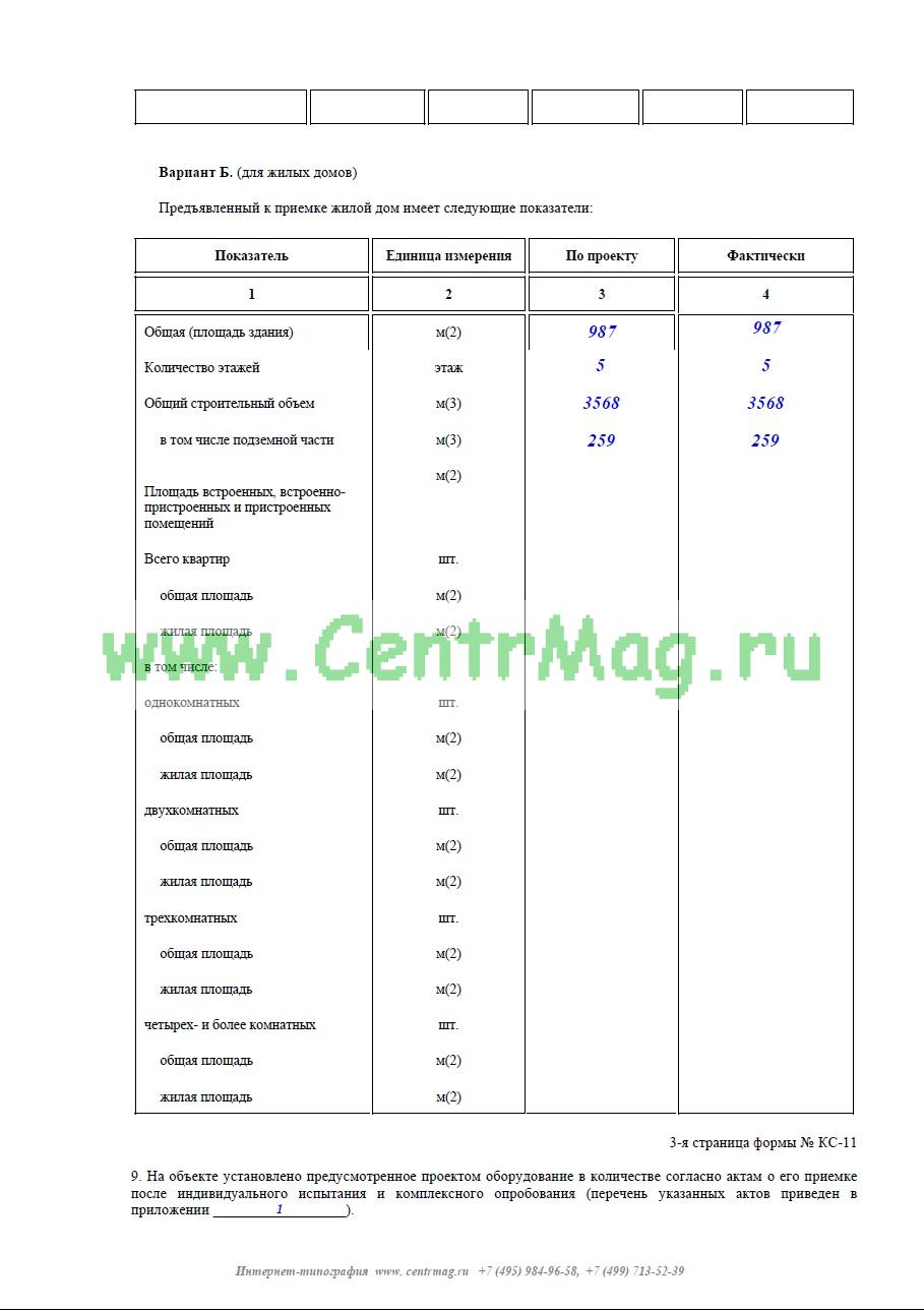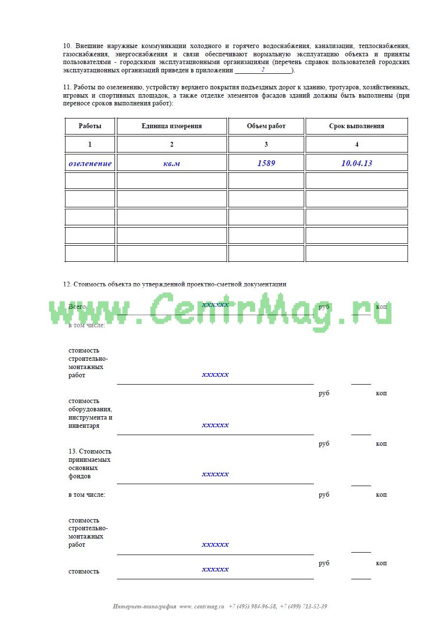Применяется как документ приемки законченного строительством объекта производственного и жилищно-гражданского назначения всех форм собственности (здания, сооружения, их очередей, пусковых комплексов, включая реконструкцию, расширение и техническое перевооружение) при их полной готовности в соответствии с утвержденным проектом, договором подряда (контрактом).