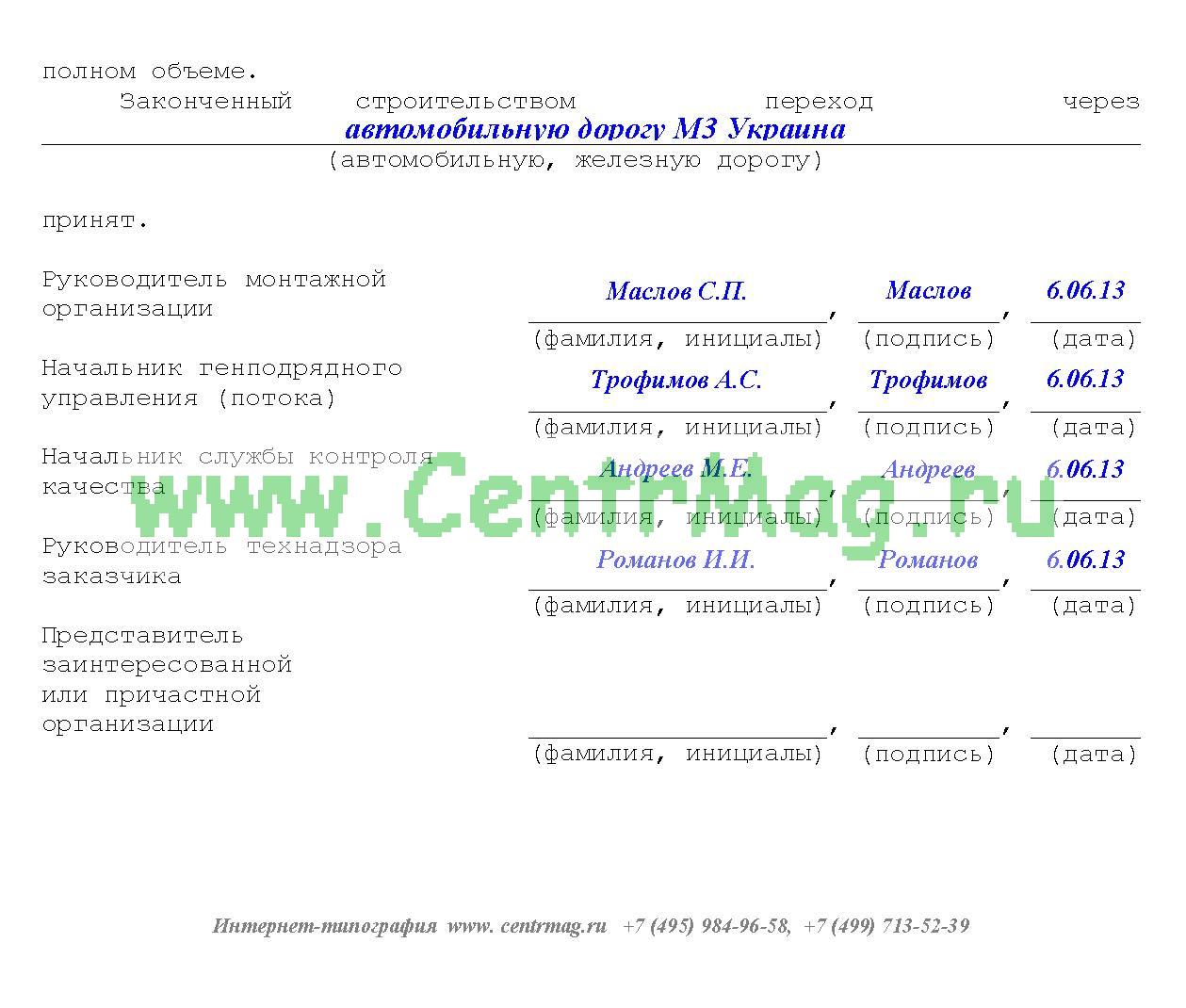 Образец и пример заполнения акта промежуточной приемки перехода трубопровода через дорогу