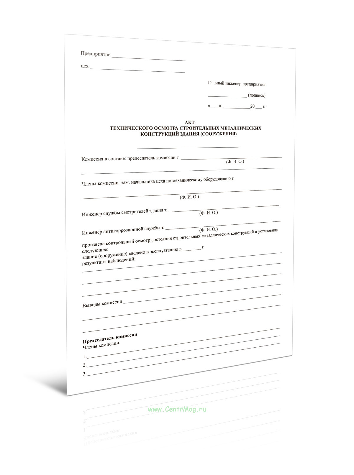 Акт технического осмотра строительных металлических конструкций здания (сооружения) продается только как чистый незаполненный бланк, без печатей и подписей соответствует 149-ФЗ от 27.07.2006