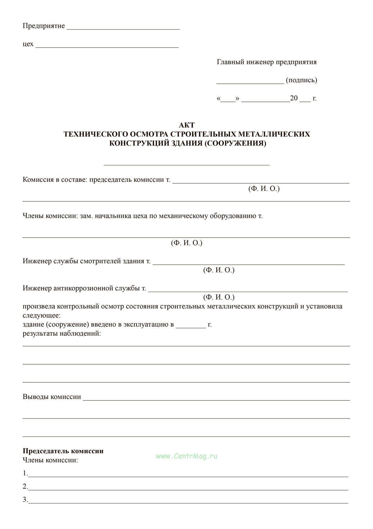 Акт технического осмотра строительных металлических конструкций здания (сооружения)