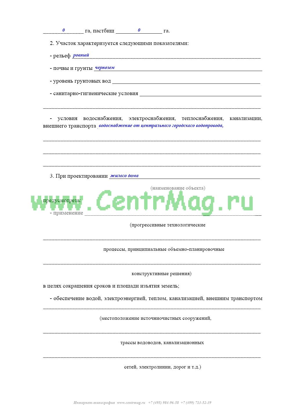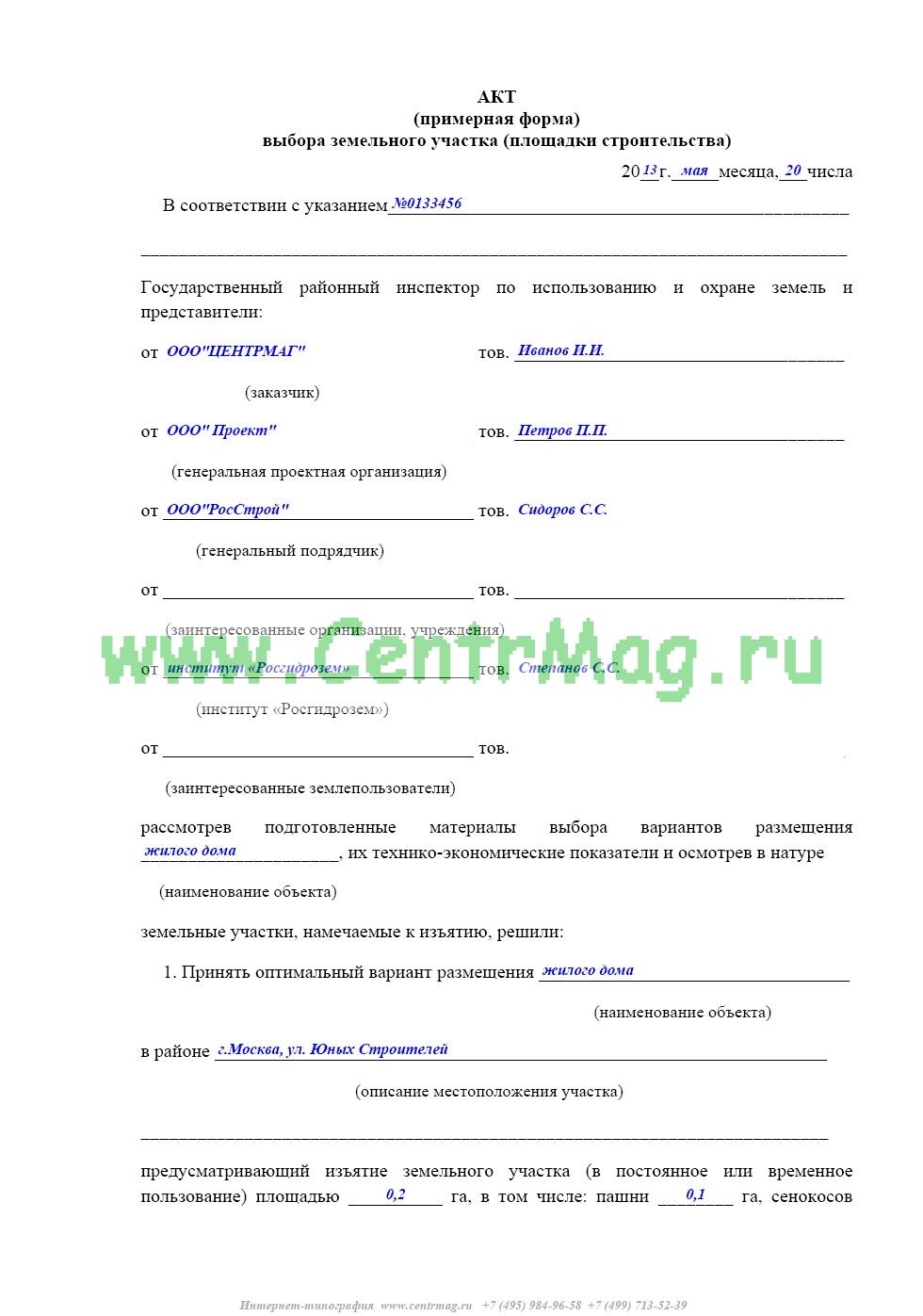 Образец и пример заполнения акта (примерной формы) выбора земельного участка (площадки строительства)