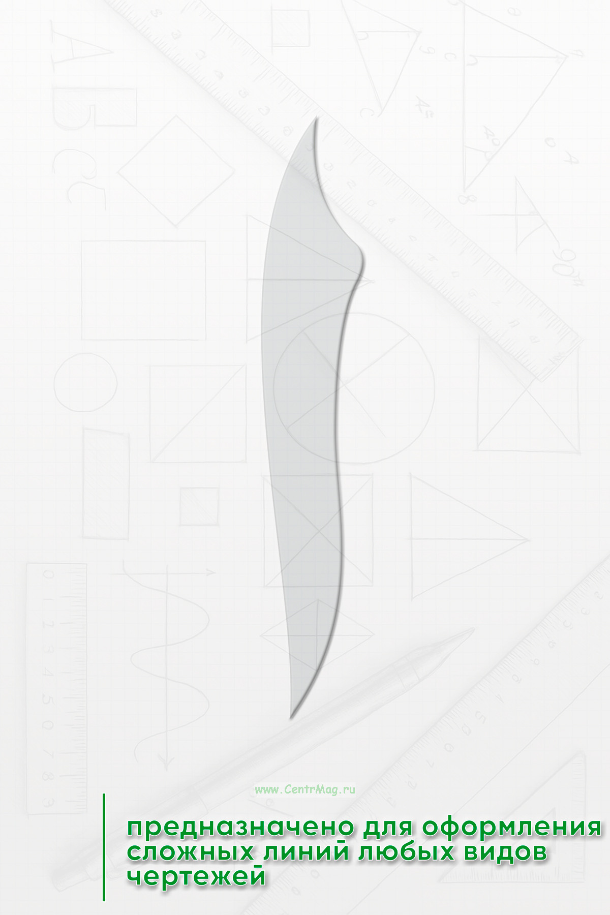 Лекало предназначено для оформления сложных линий любых видов чертежей. Используется для построения выкроек.Прочный и упругий материал позволяет пользоваться лекалом много раз.