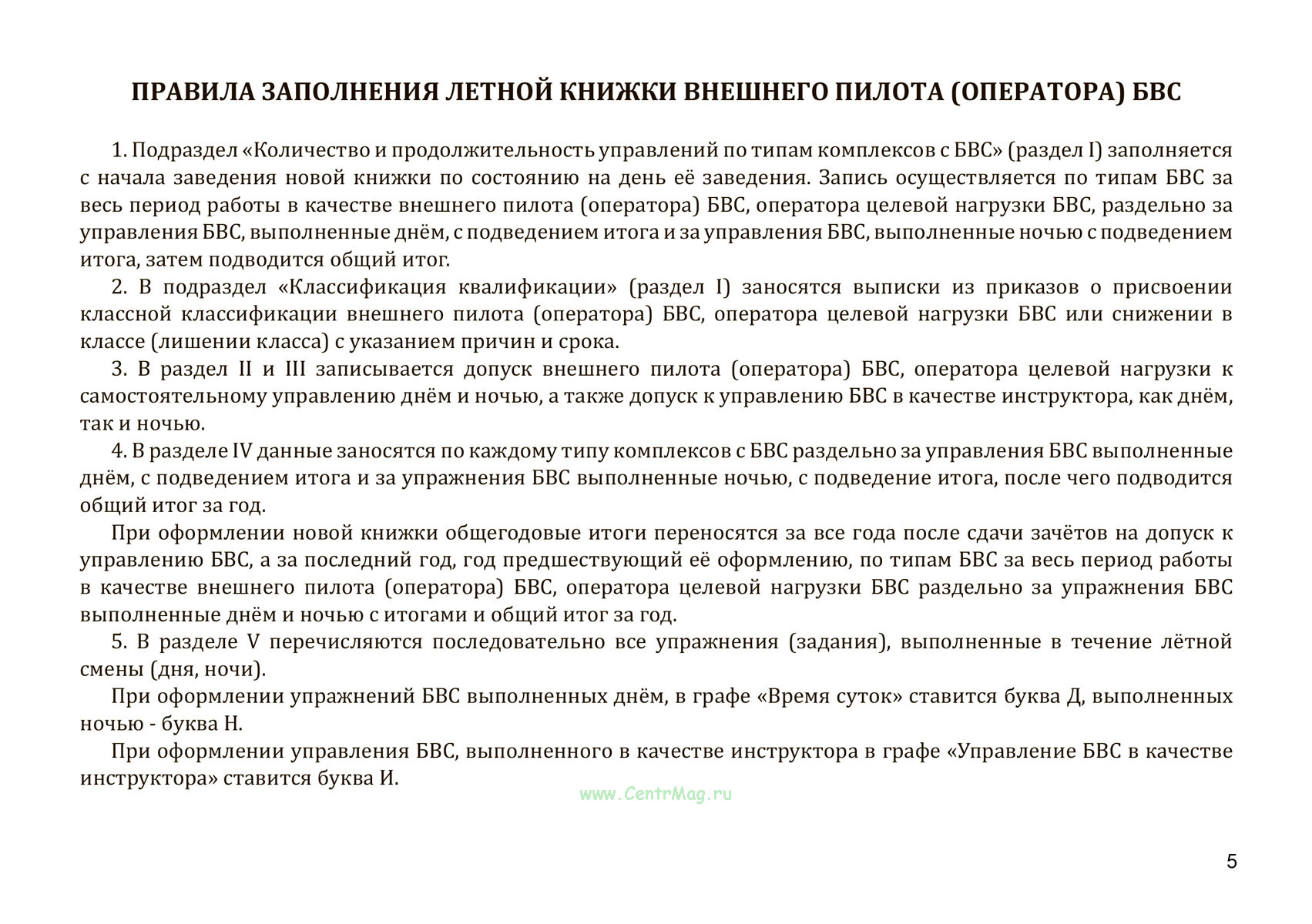 Правила заполнения книжки внешнего пилота (оператора) БВС