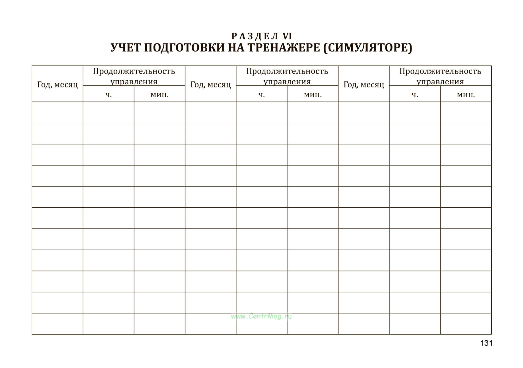 Раздел VI. Учёт подготовки на тренажёре (симуляторе)