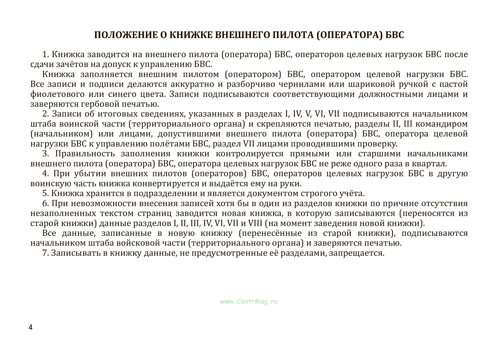 Положение о книжке внешнего пилота (оператора) БВС