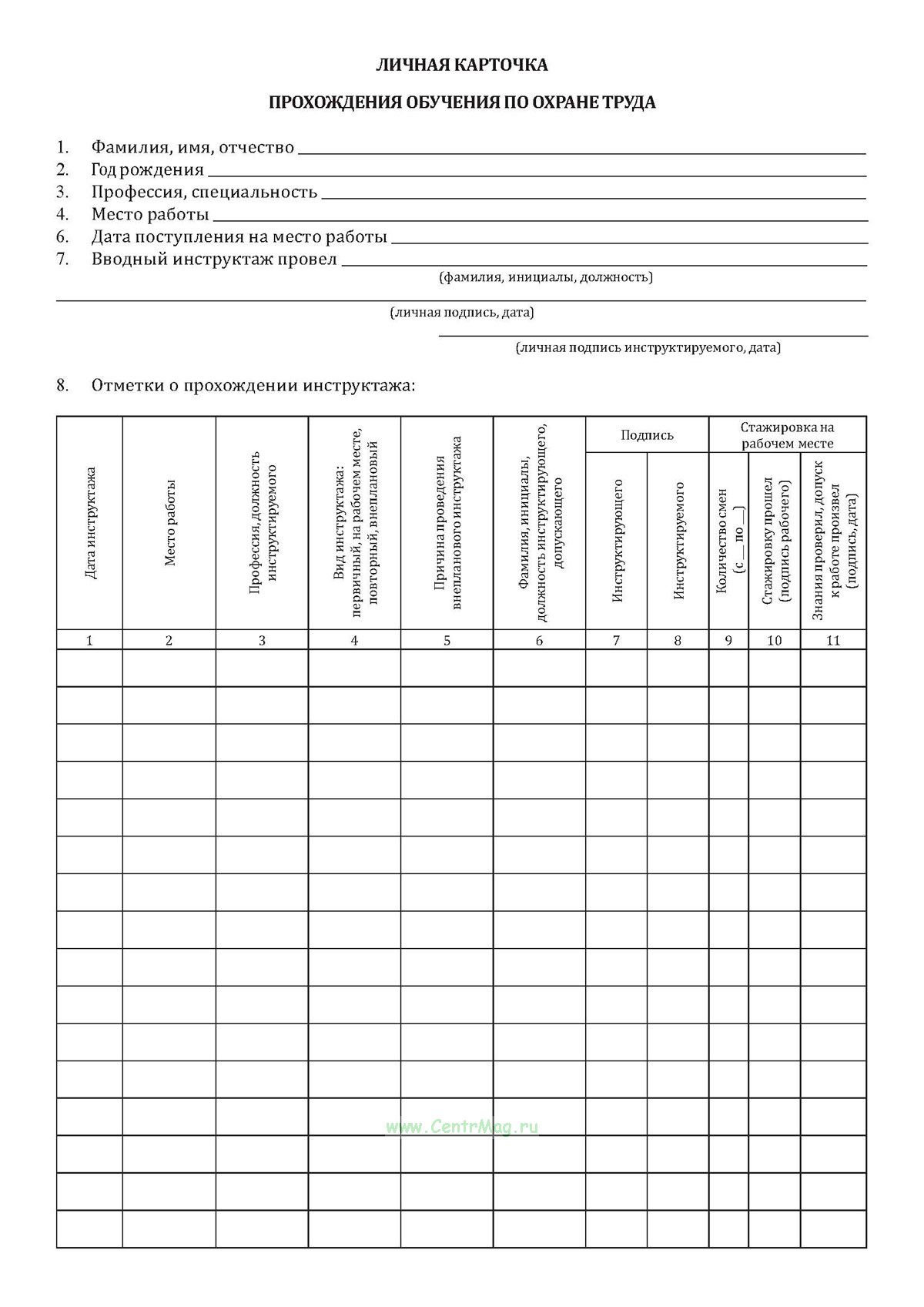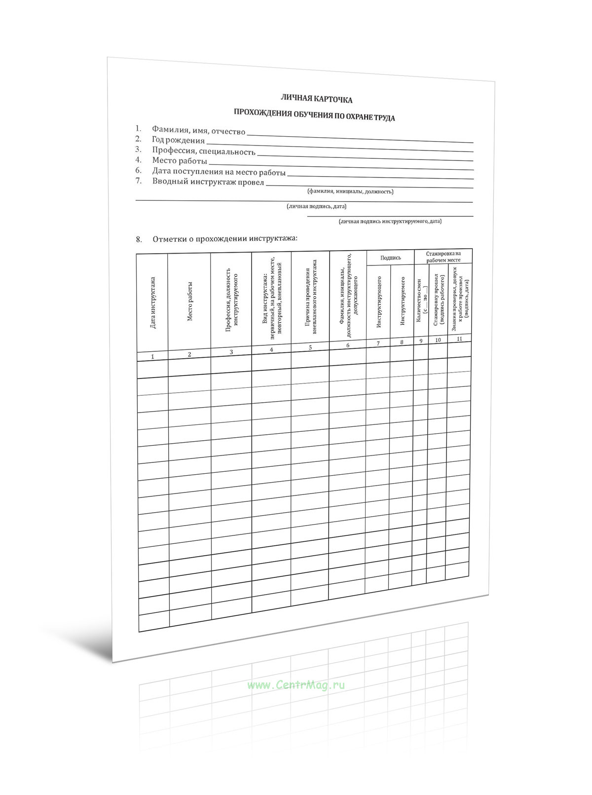 Личная карточка прохождения обучения по охране труда продается только как чистый незаполненный бланк, без печатей и подписей соответствует 149-ФЗ от 27.07.2006