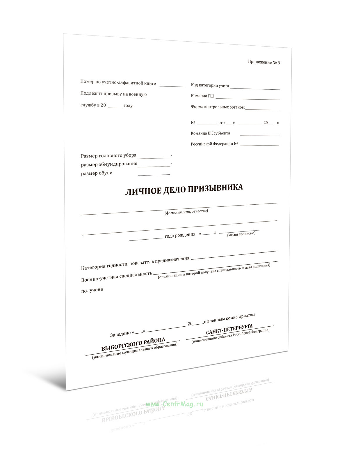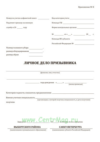 Личное дело призывника (Приложение №8)