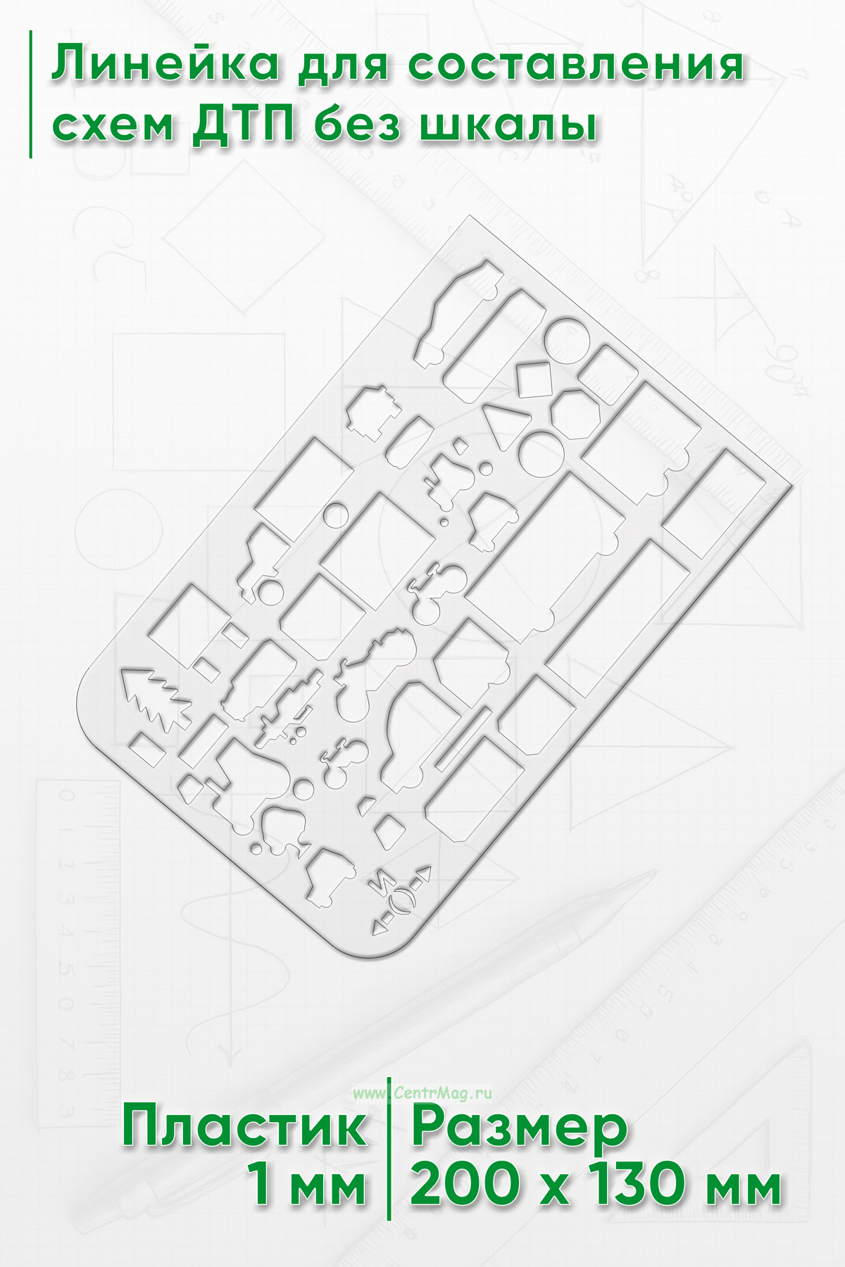 Линейка для составления схем ДТП без шкалы 20х13 см