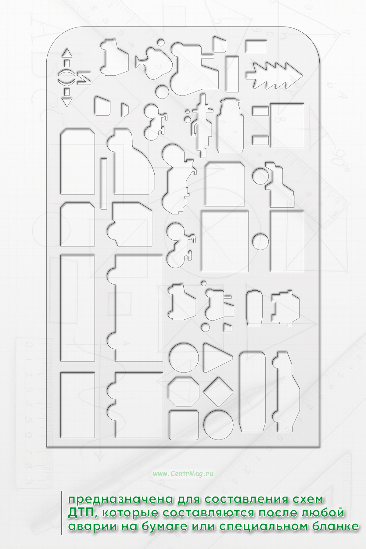 Линейка предназначена для составления схем ДТП, которые составляются после любой аварии на бумаге или специальном бланке. Она будет полезна инспекторам ГИБДД, дежурным следователям, водителям.