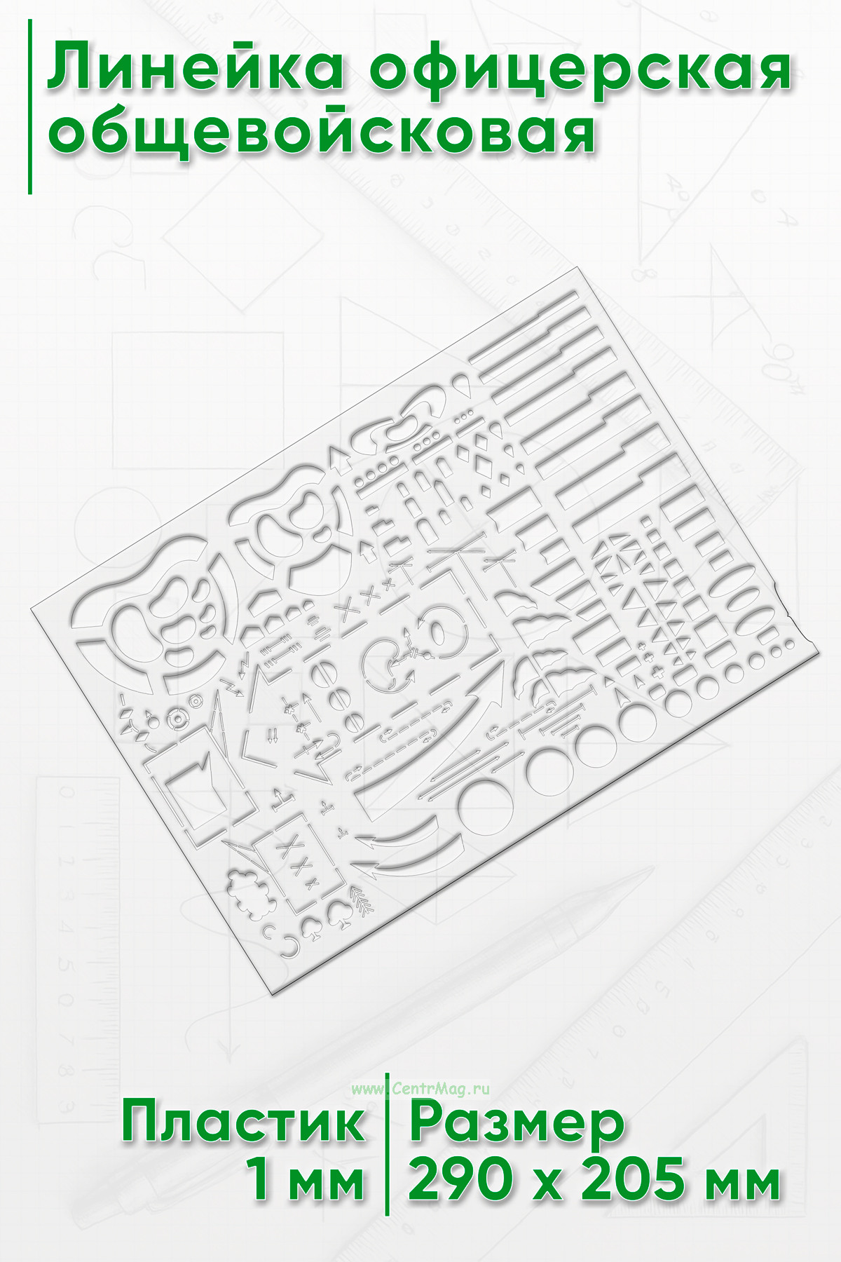 Линейка офицерская необходима при создании графических изображений и построения схем, карт и планов. Содержит большое количество тактических элементов.