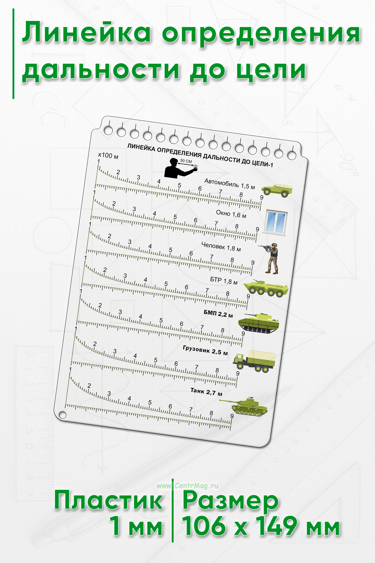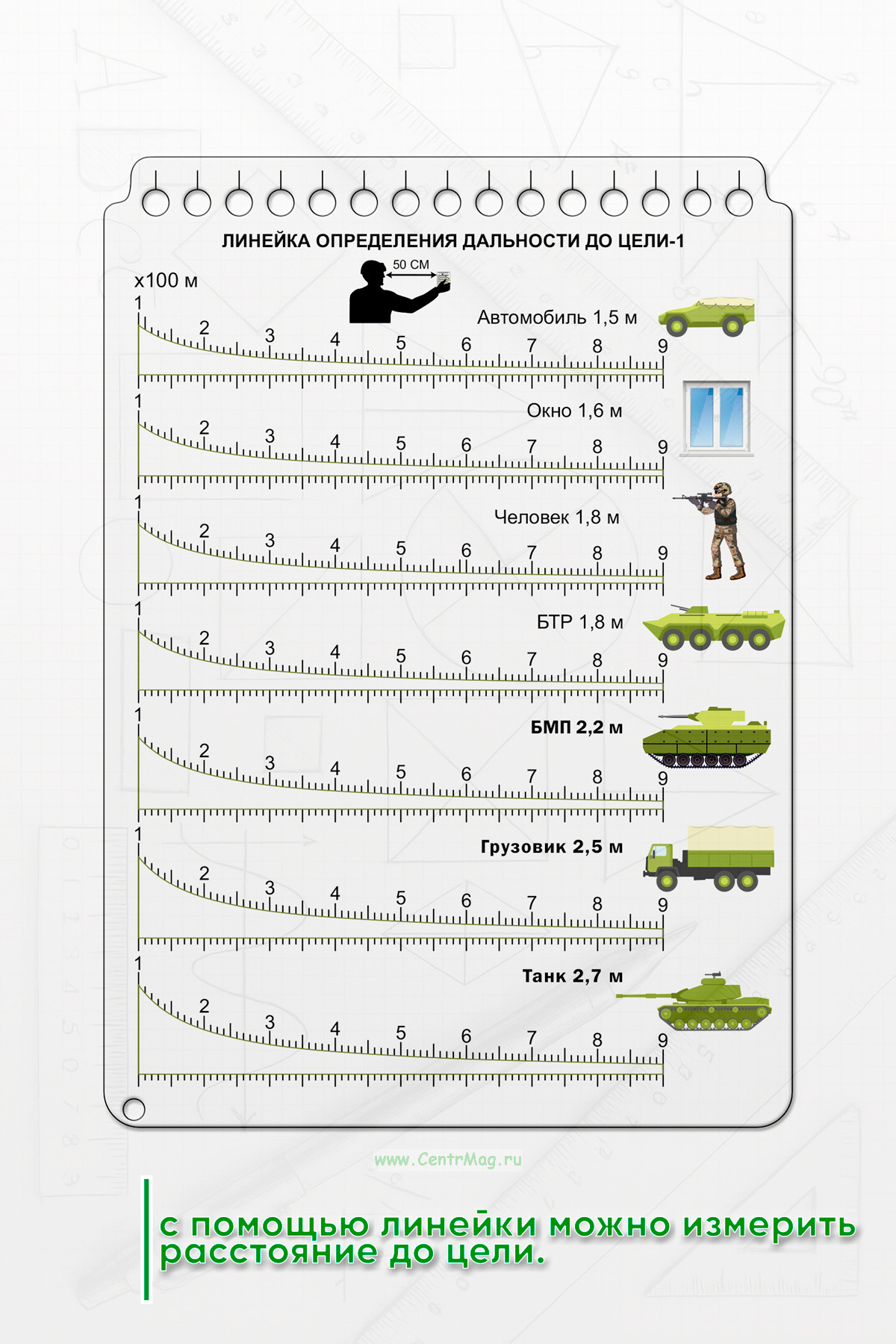 Для определения дальности необходимо держать линейку на расстоянии 50 см от глаз.
