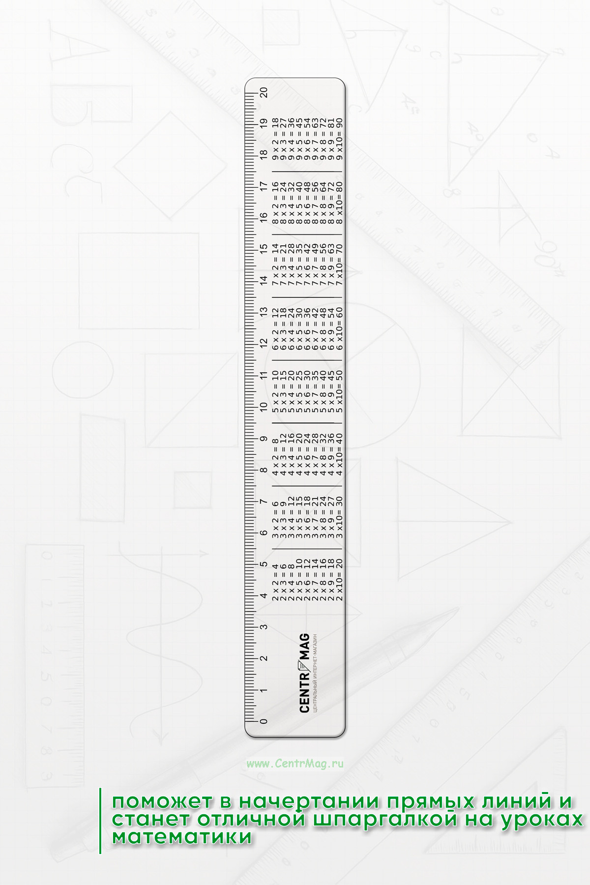 Линейка с таблицей умножения поможет в начертании прямых линий и станет отличной шпаргалкой на уроках математики.