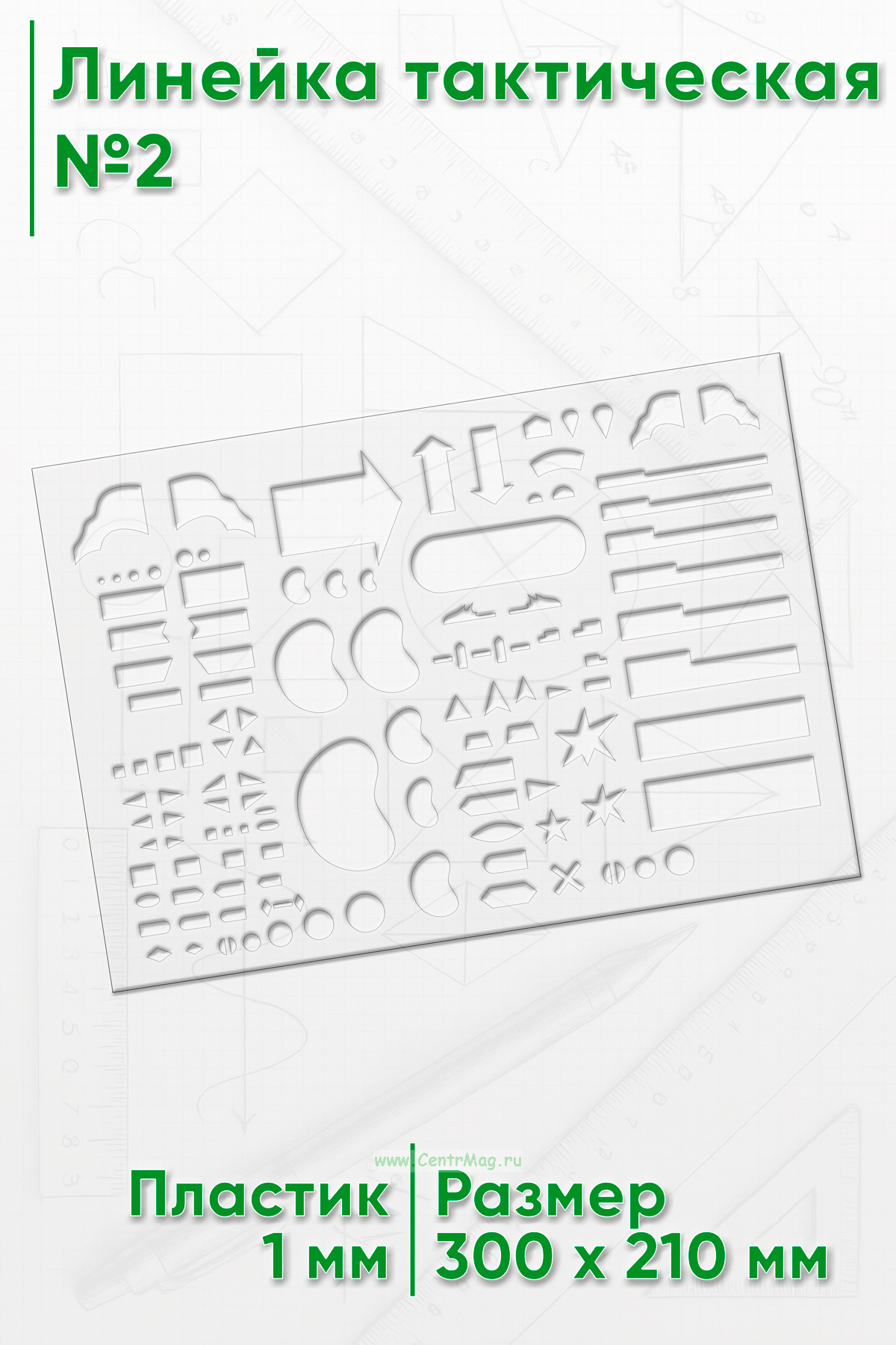 Линейка содержит все необходимые штабу для работы на карте элементы. С ее помощью получится быстро подготовить решение, и вести обстановку. Сделана из тонкого, гибкого, прозрачного пластика.