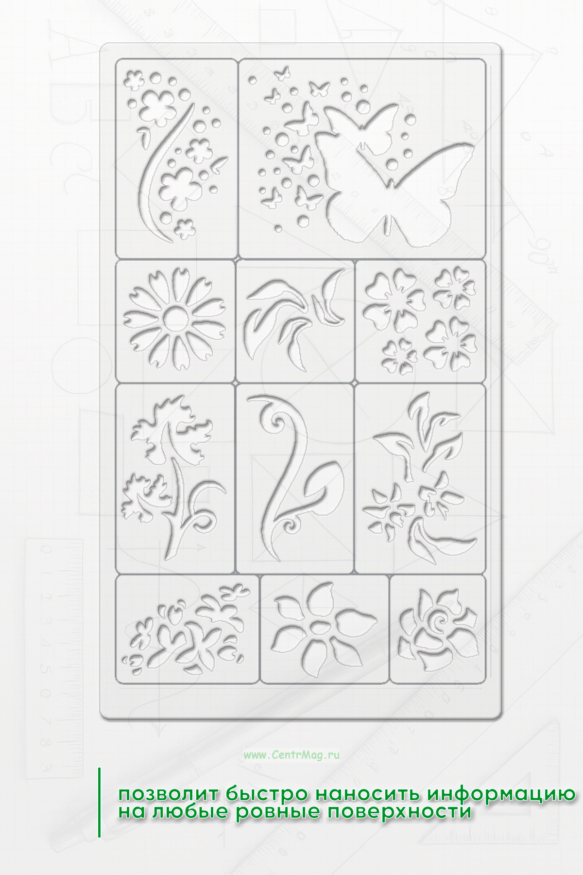 Трафарет позволит быстро наносить информацию на любые ровные поверхности. Прочный и упругий материал позволяет пользоваться трафаретом много раз.