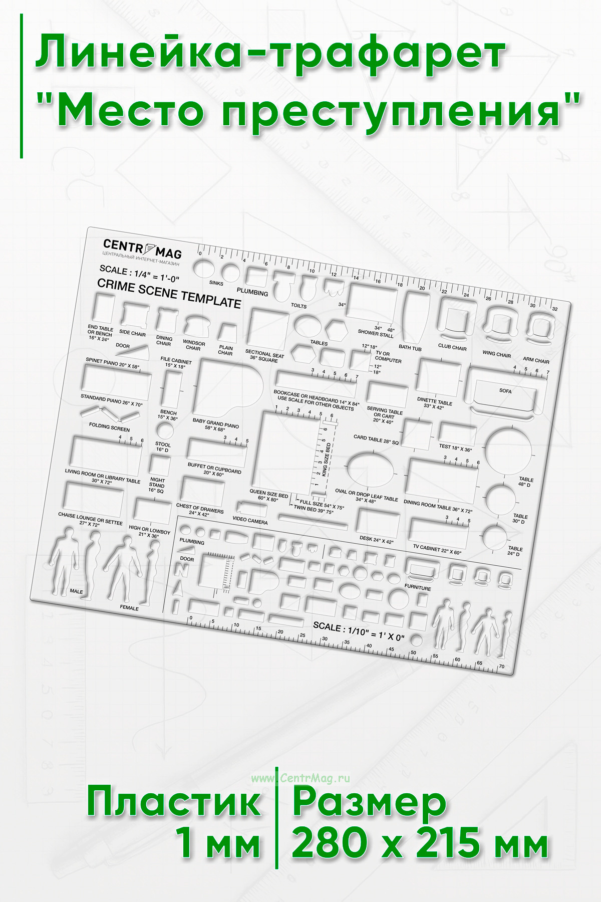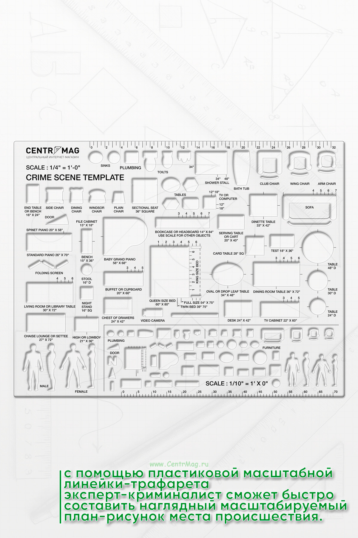 С помощью пластиковой масштабной линейки-трафарета эксперт-криминалист сможет быстро составить наглядный масштабируемый план-рисунок места происшествия.