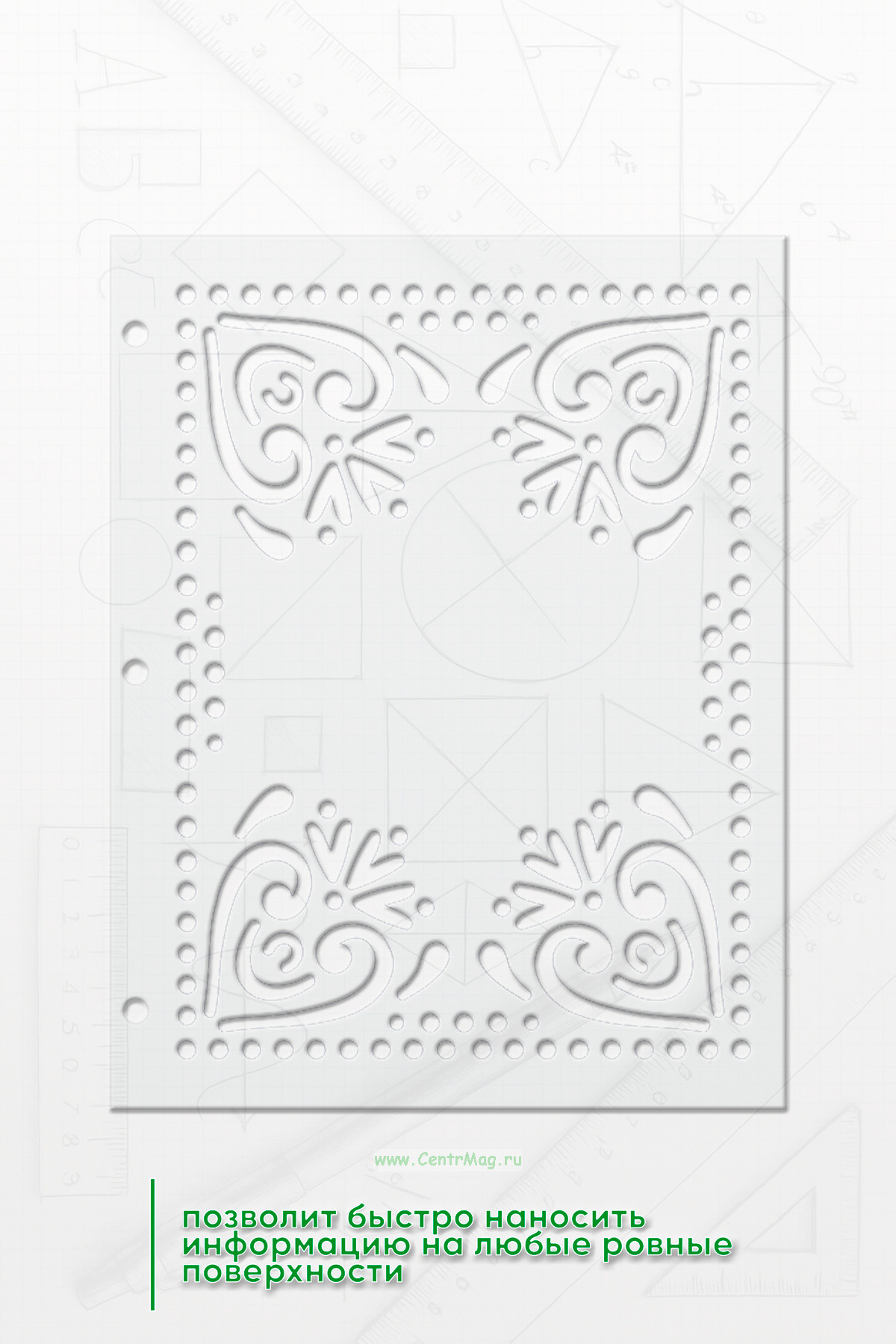 Трафарет позволит быстро наносить информацию на любые ровные поверхности. Прочный и упругий материал позволяет пользоваться трафаретом много раз.