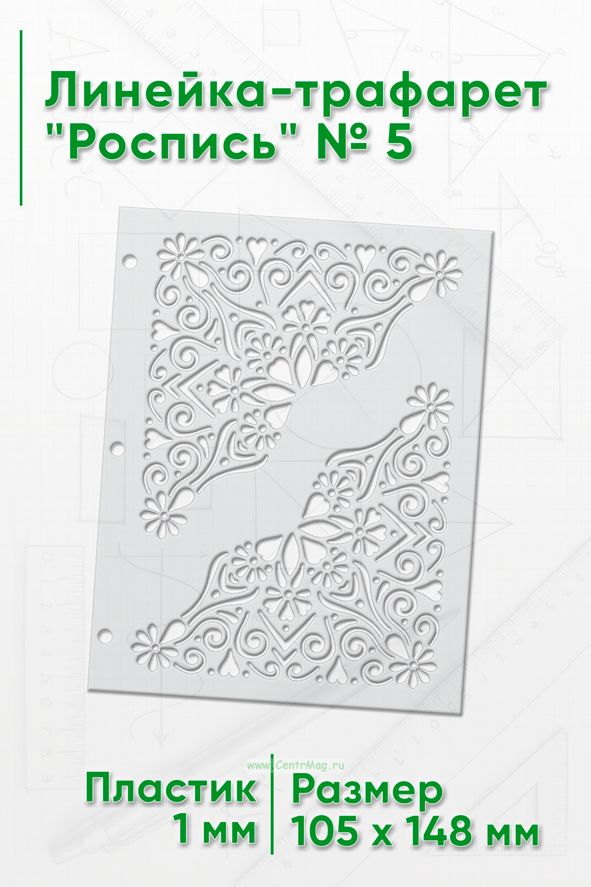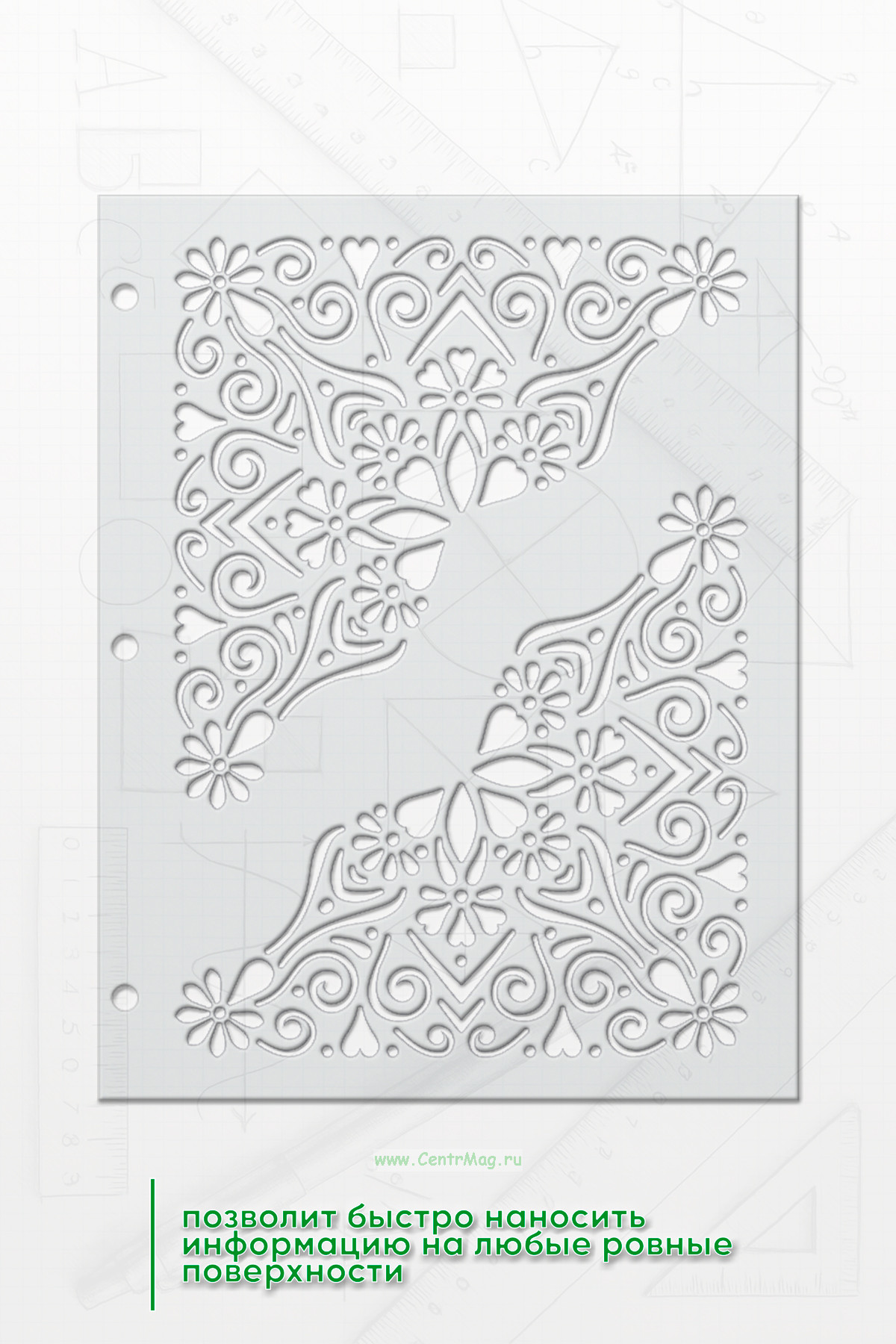 Трафарет позволит быстро наносить информацию на любые ровные поверхности. Прочный и упругий материал позволяет пользоваться трафаретом много раз.
