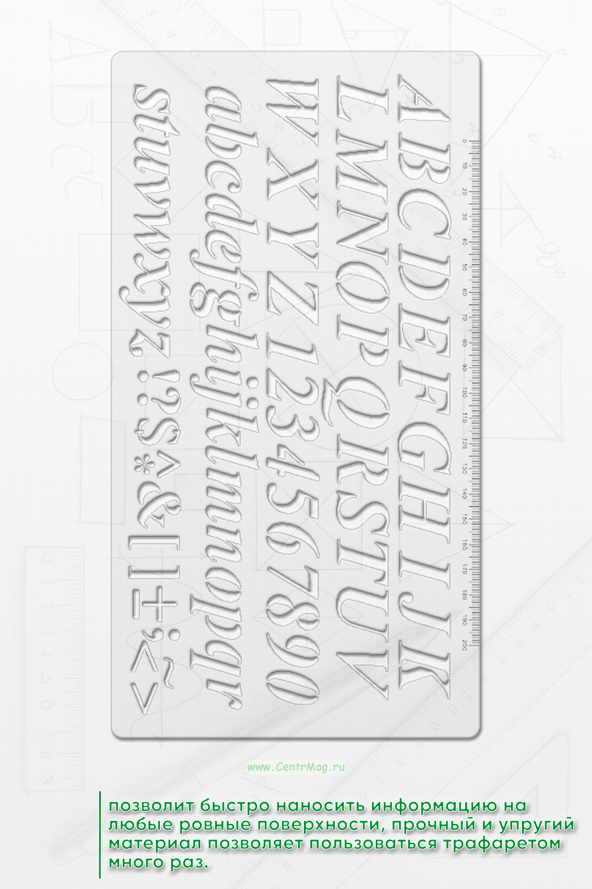 Линейка-трафарет "Шрифт Italic № 5" (англ. 147 х 273 мм)