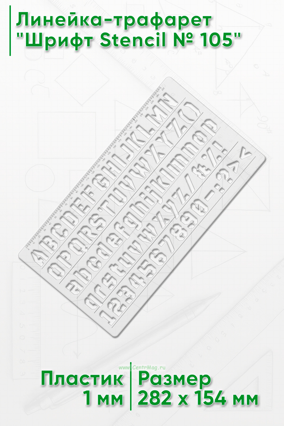 Линейка-трафарет "Шрифт Stencil № 105" (англ. 282 х 154 мм)
