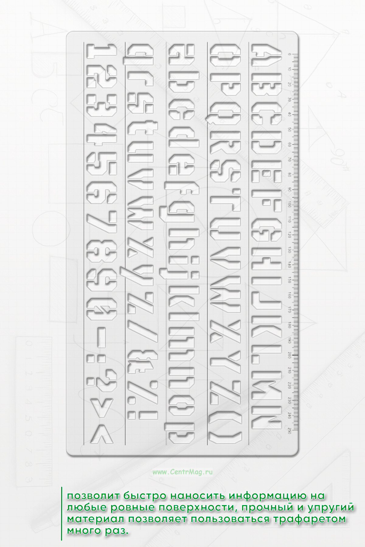 Линейка-трафарет "Шрифт Aero Matics Stencil" (рус. 200 х 100 мм) (280 руб.)