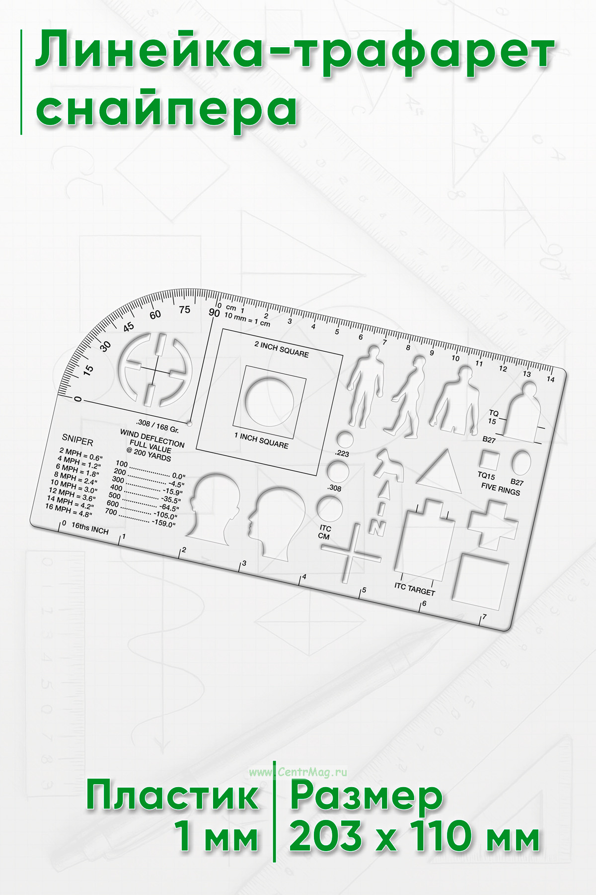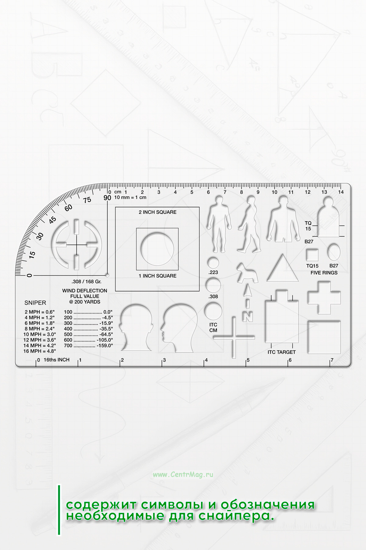 Линейка-трафарет содержит символы и обозначения необходимые для снайпера.