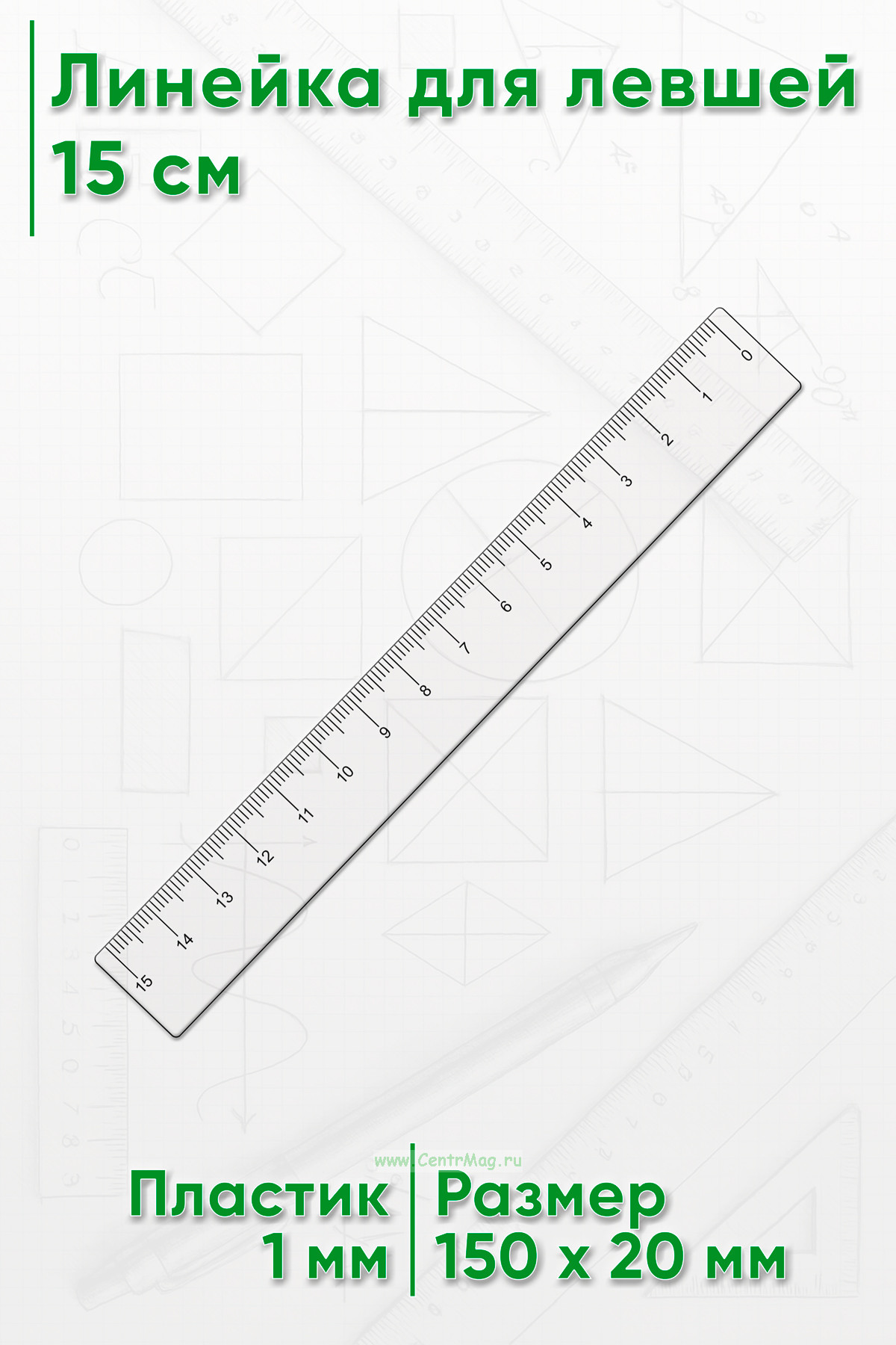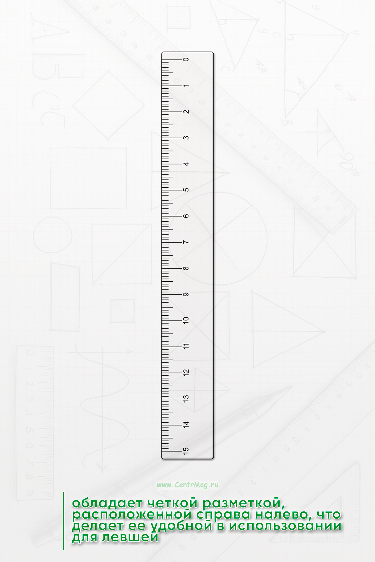 Линейка обладает четкой разметкой, расположенной справа налево, что делает ее удобной в использовании для левшей
