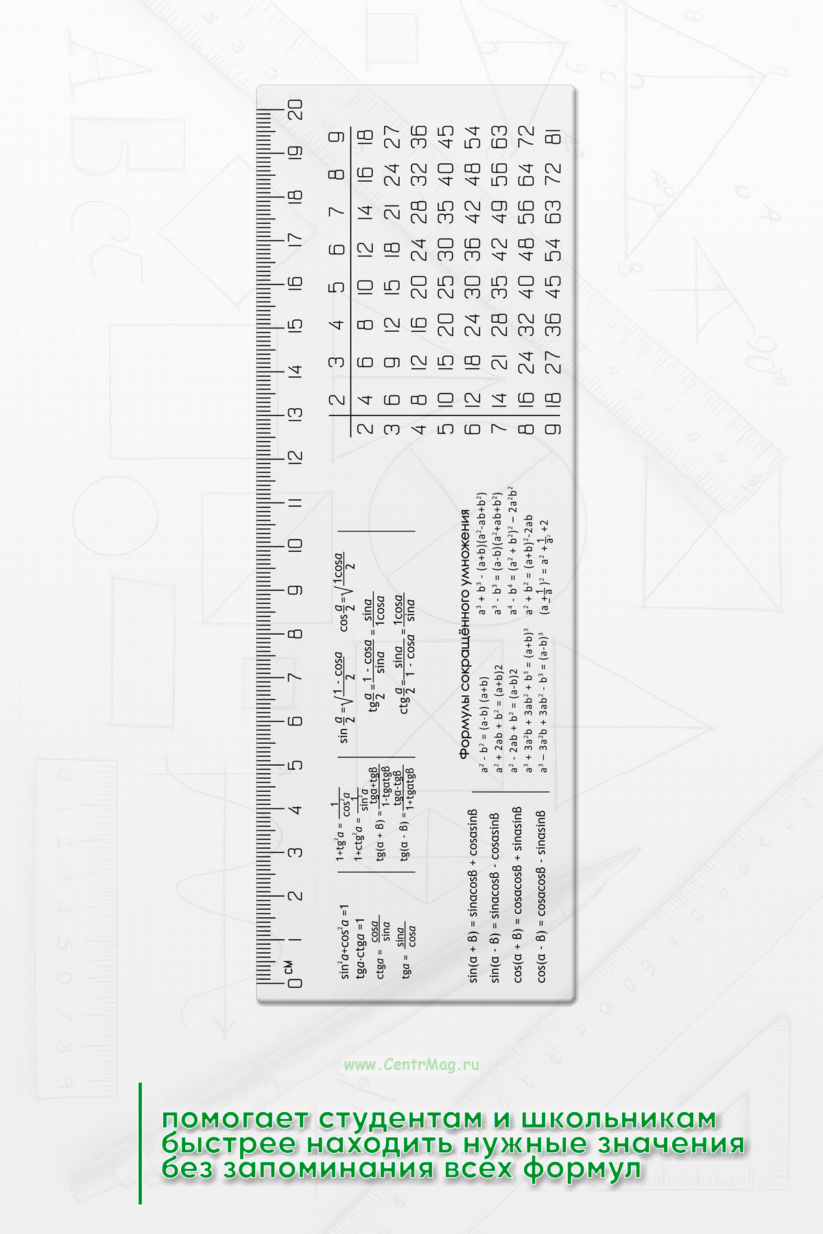 Линейка-шпаргалка "Тригонометрия и Таблица умножения"