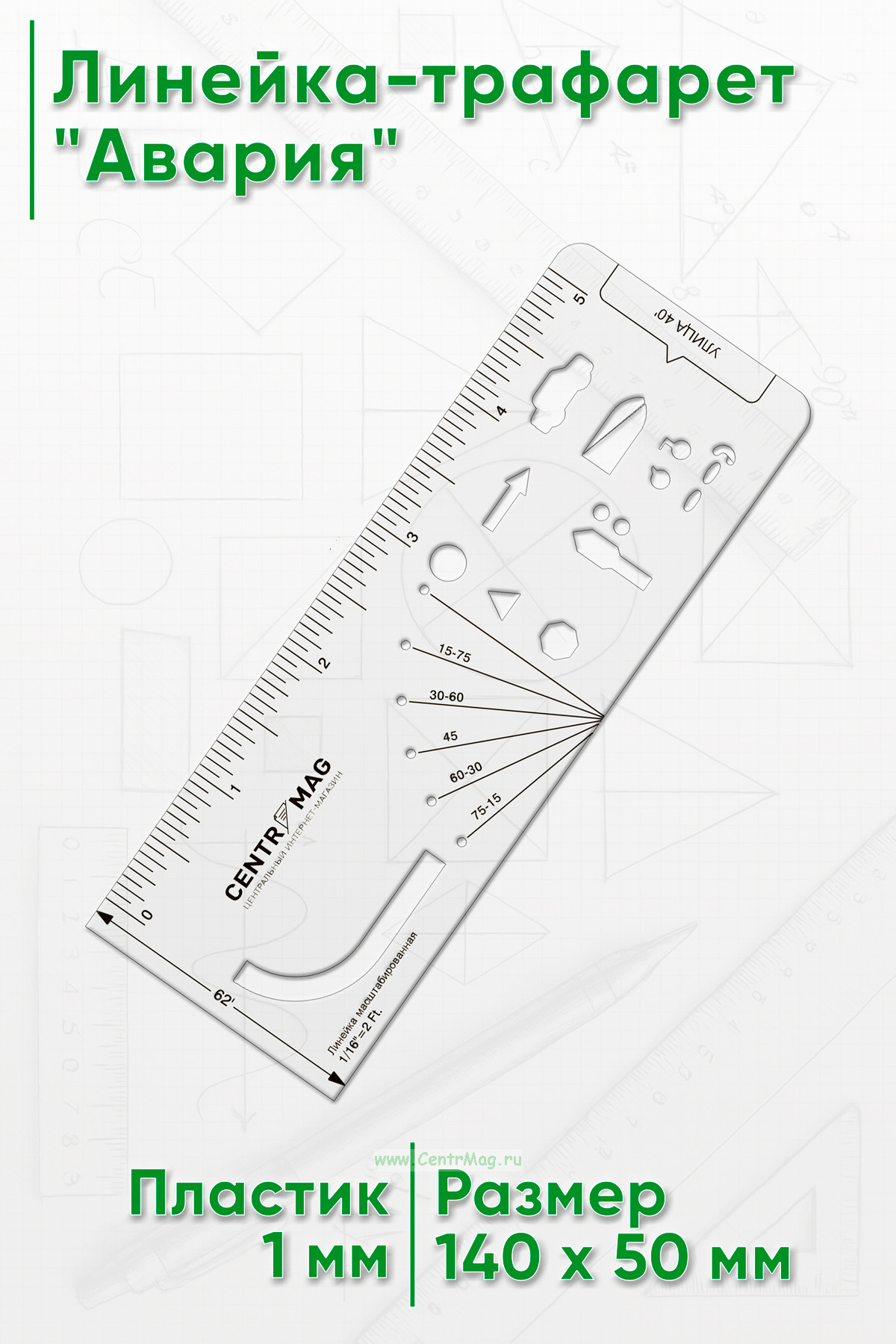 Линейка-трафарет используется экспертами для составления отчетов о несчастных случаях с описанием инцидента, произошедшего на месте происшествия.
