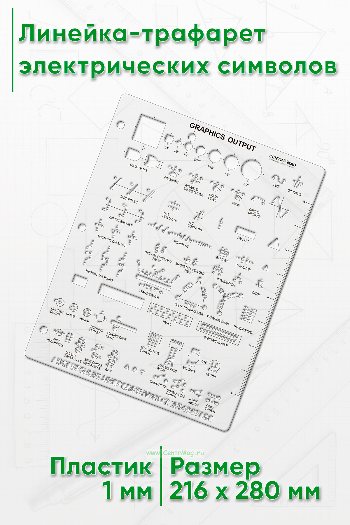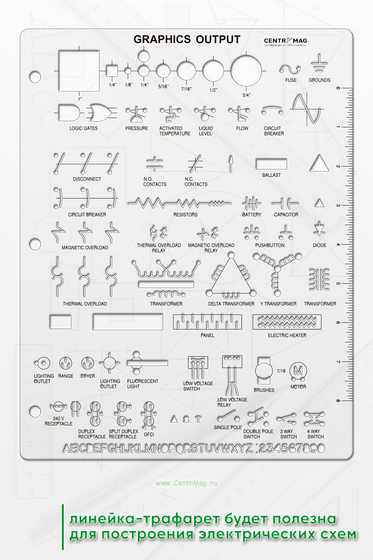 Линейка-трафарет будет полезна для построения электрических схем. Электрическая схема - это документ, составленный в виде условных изображений или обозначений составных частей изделия.