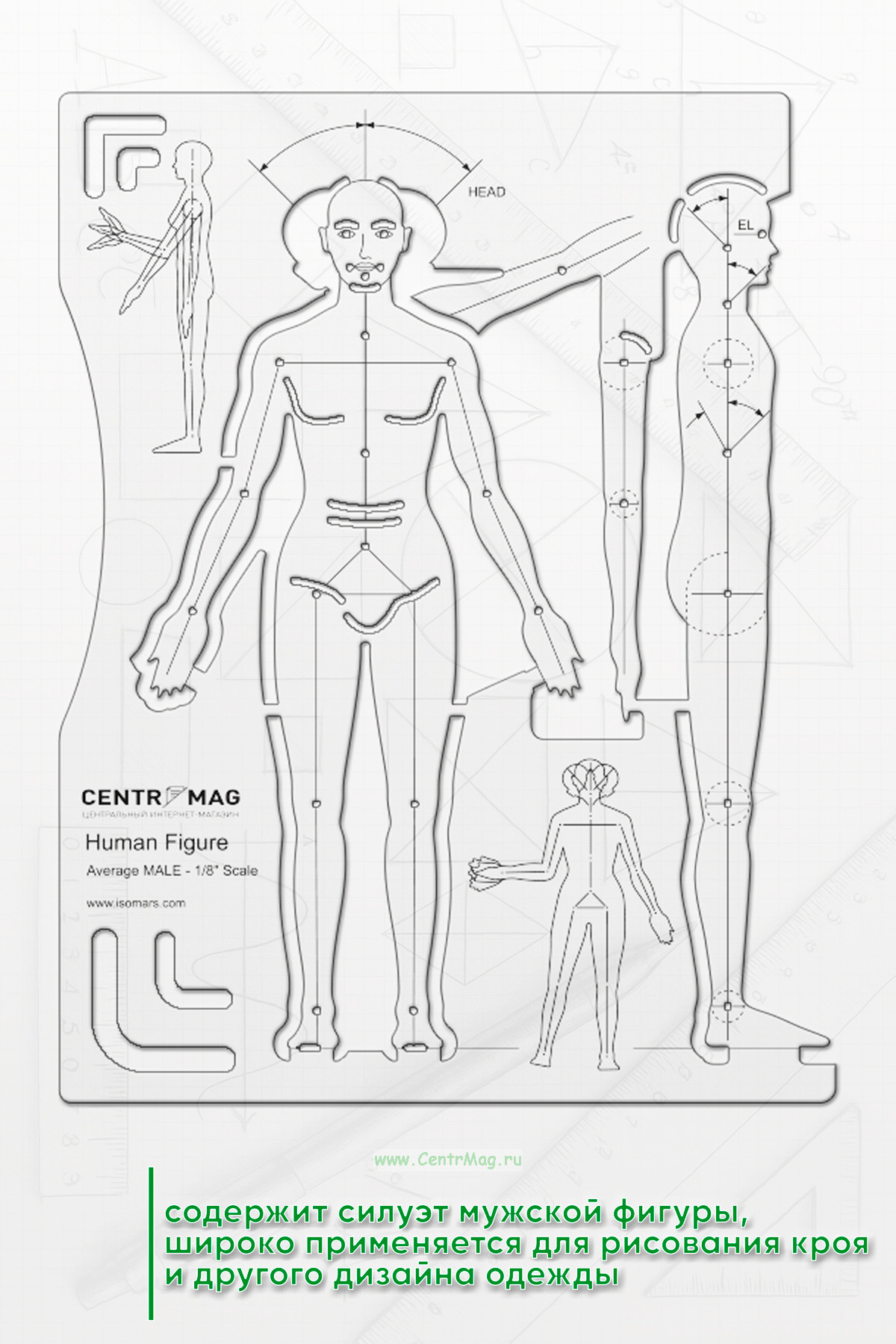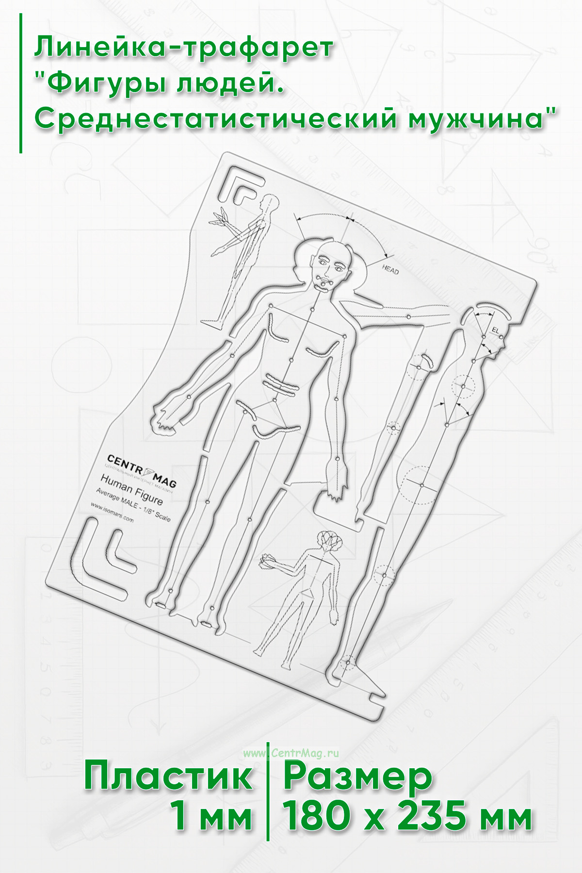 Линейка-трафарет "Фигуры людей. Среднестатистический мужчина."