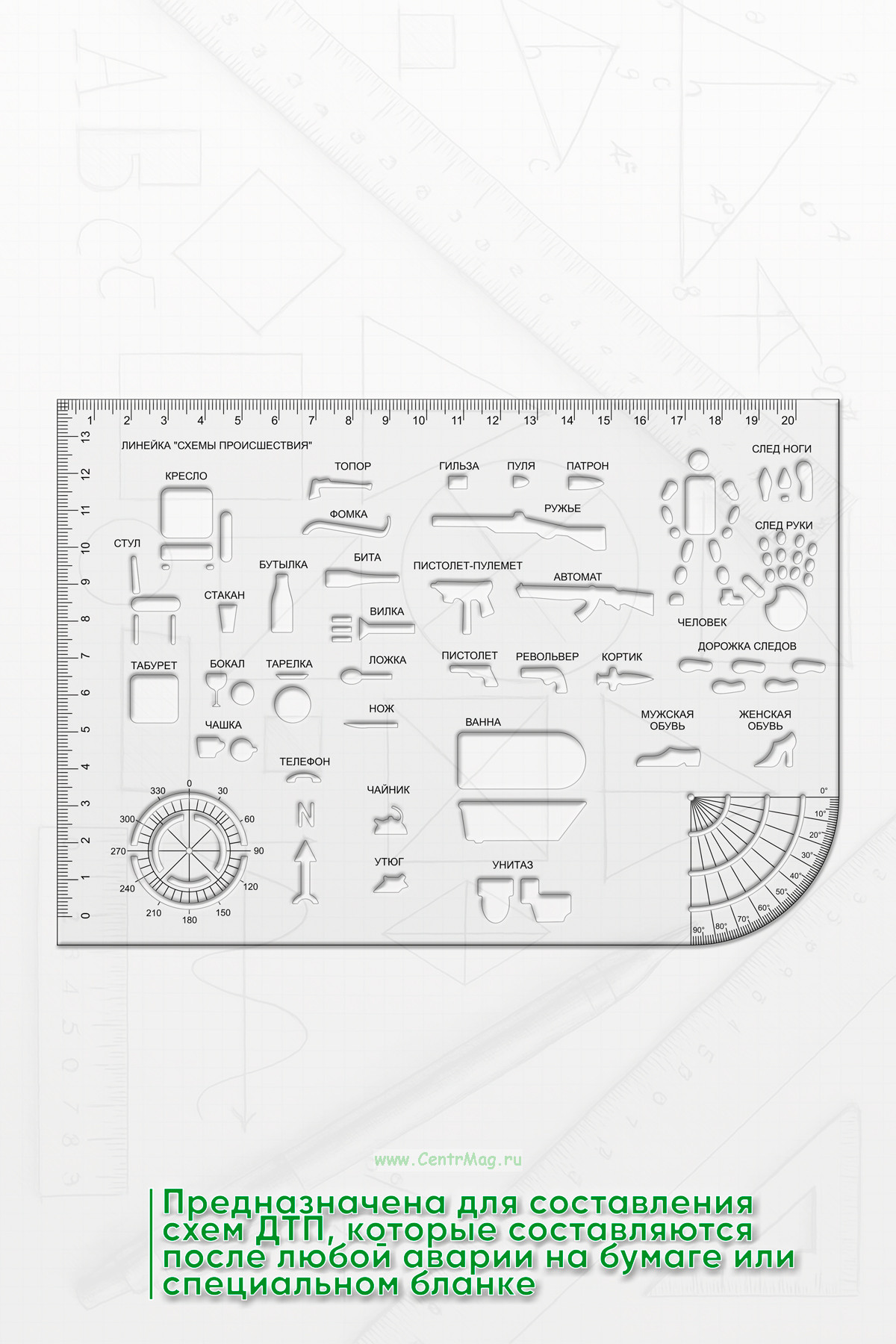 Линейка предназначена для составления схем ДТП, которые составляются после любой аварии на бумаге или специальном бланке.