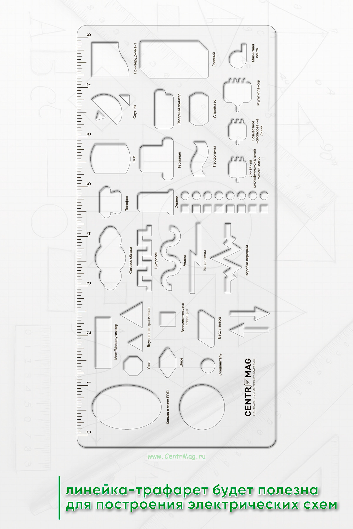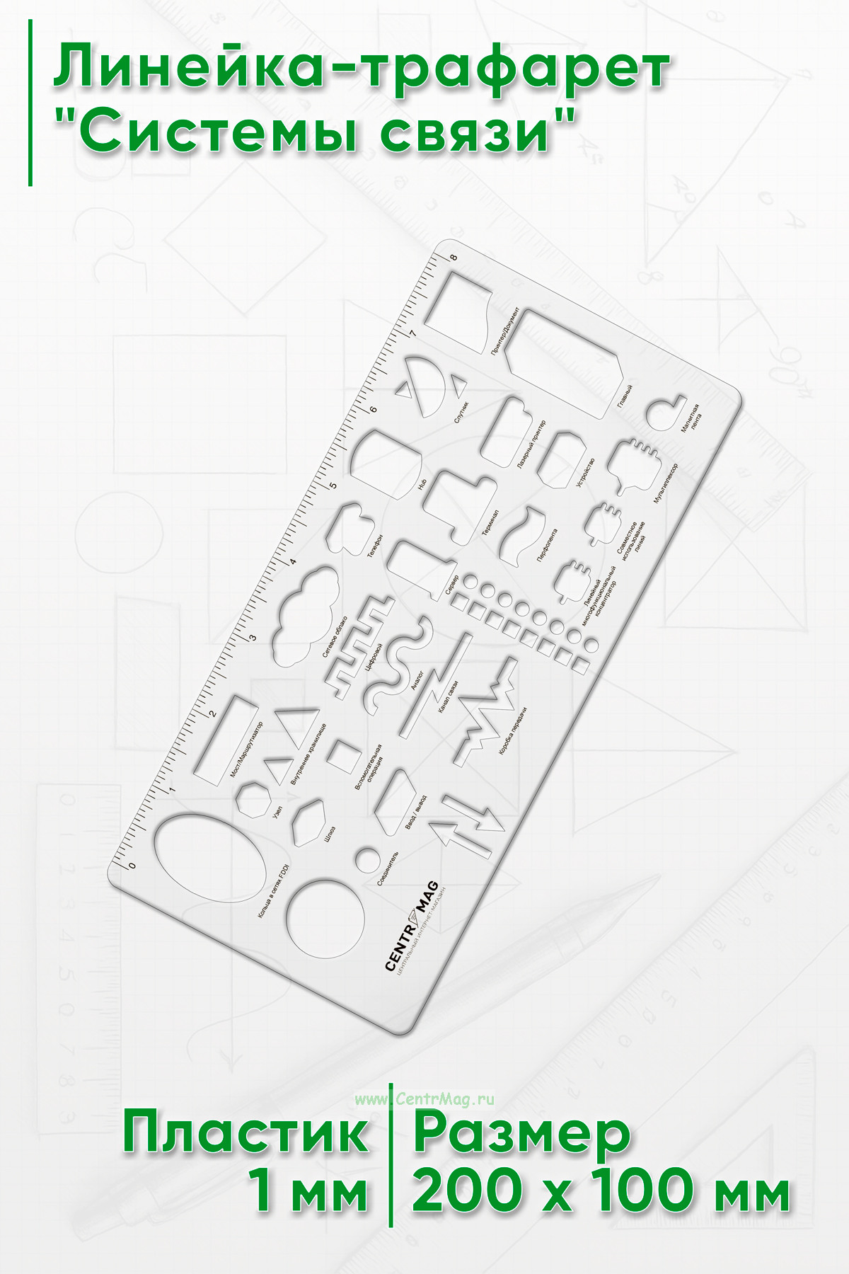 Линейка-трафарет "Системы связи" (англ) (550 руб.)