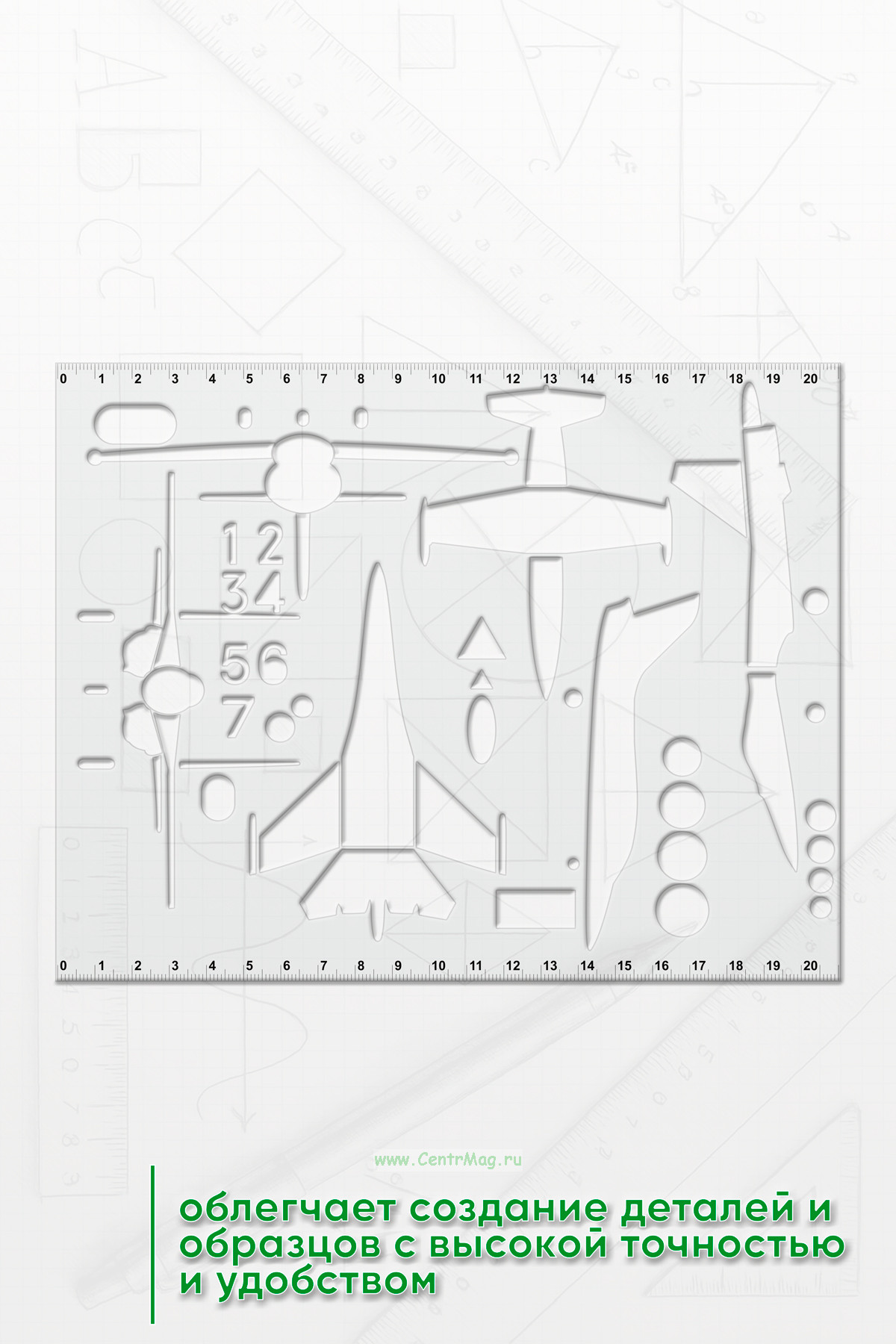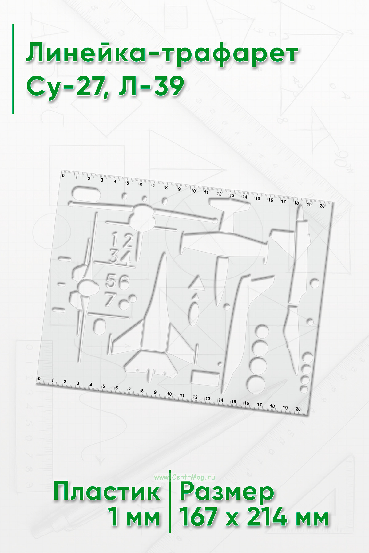 Линейка-трафарет Су-27, Л-39 предназначена для точного наложения контуров и эскизов самолетов Су-27 и Л-39 при черчении, моделировании или художественной работе. Она облегчает создание деталей и образцов с высокой точностью и удобством.