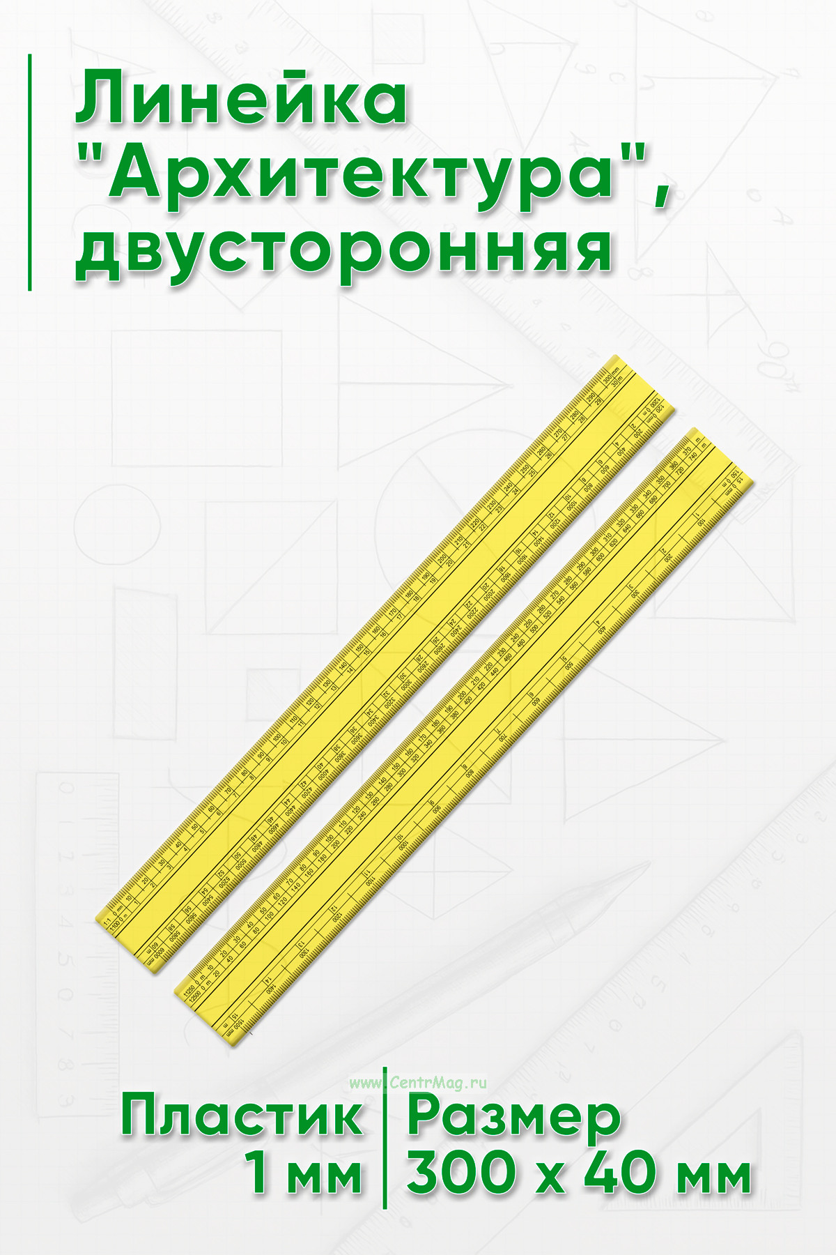 Линейка "Архитектура" двусторонняя — это специализированный измерительный инструмент, предназначенный для работы с архитектурными чертежами и проектами.