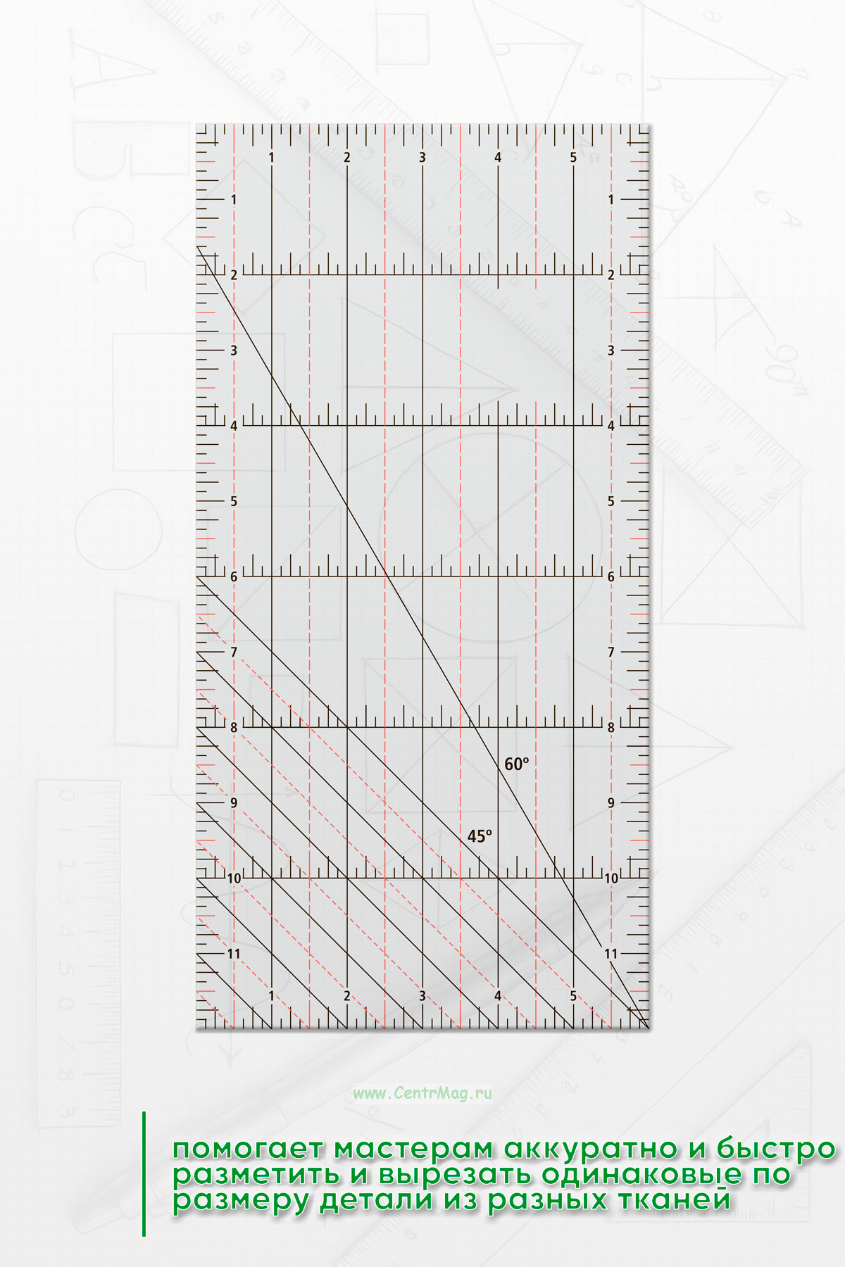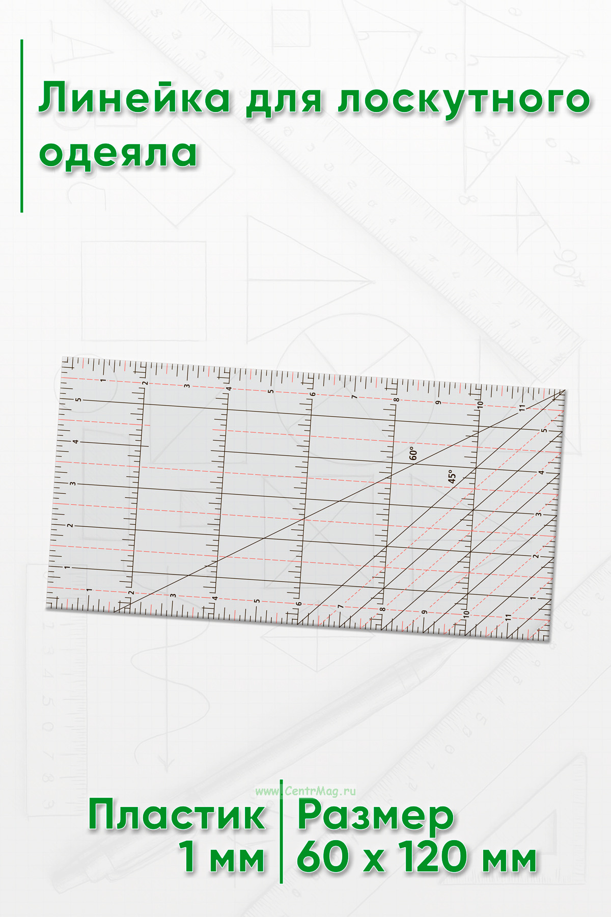 Линейка для лоскутного одеяла — это специальный инструмент, который используется для точного измерения и резки тканей при создании лоскутных одеял (пэчворка). Она помогает мастерам аккуратно и быстро разметить и вырезать одинаковые по размеру детали из разных тканей.