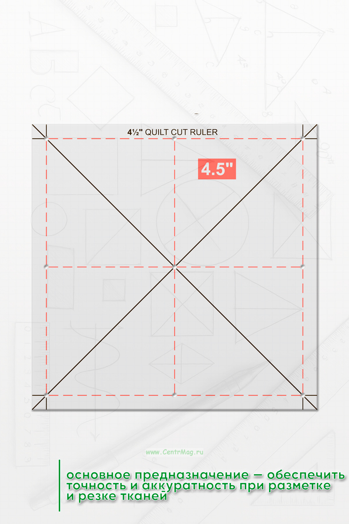 Линейка для лоскутных вырезов — это специализированный инструмент, используемый в технике лоскутного шитья и квилтинга. Ее основное предназначение — обеспечить точность и аккуратность при разметке и резке тканей.