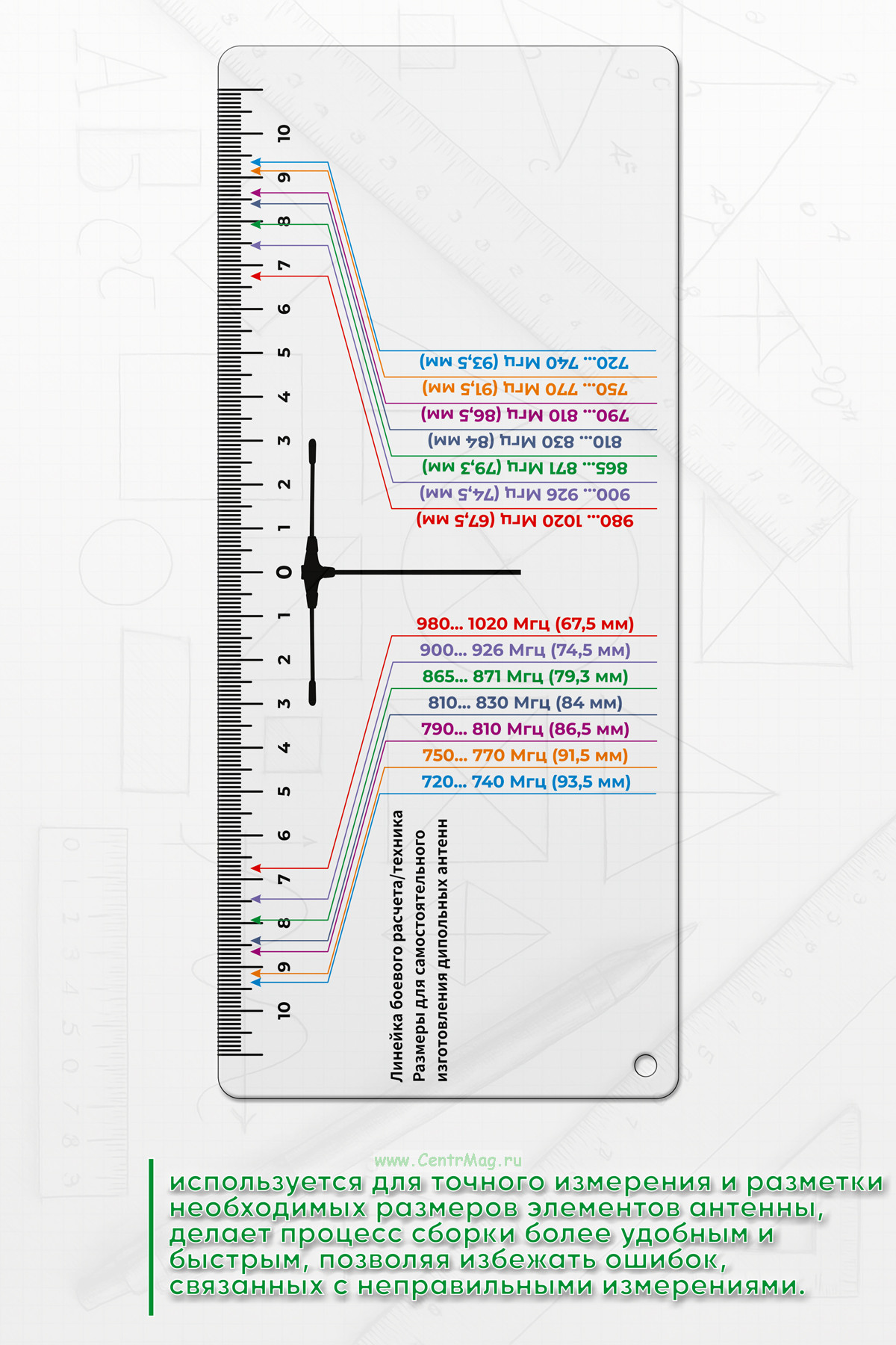 Линейка используется для точного измерения и разметки необходимых размеров элементов антенны, делает процесс сборки более удобным и быстрым, позволяя избежать ошибок, связанных с неправильными измерениями.