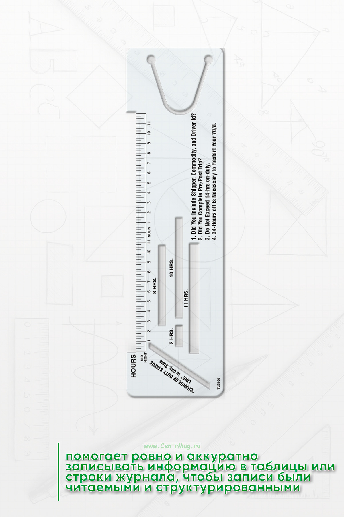 Линейка для журнала дальнобойщика — это специальный инструмент или приспособление, которое используется для удобства ведения записей в журнале водителя-дальнобойщика