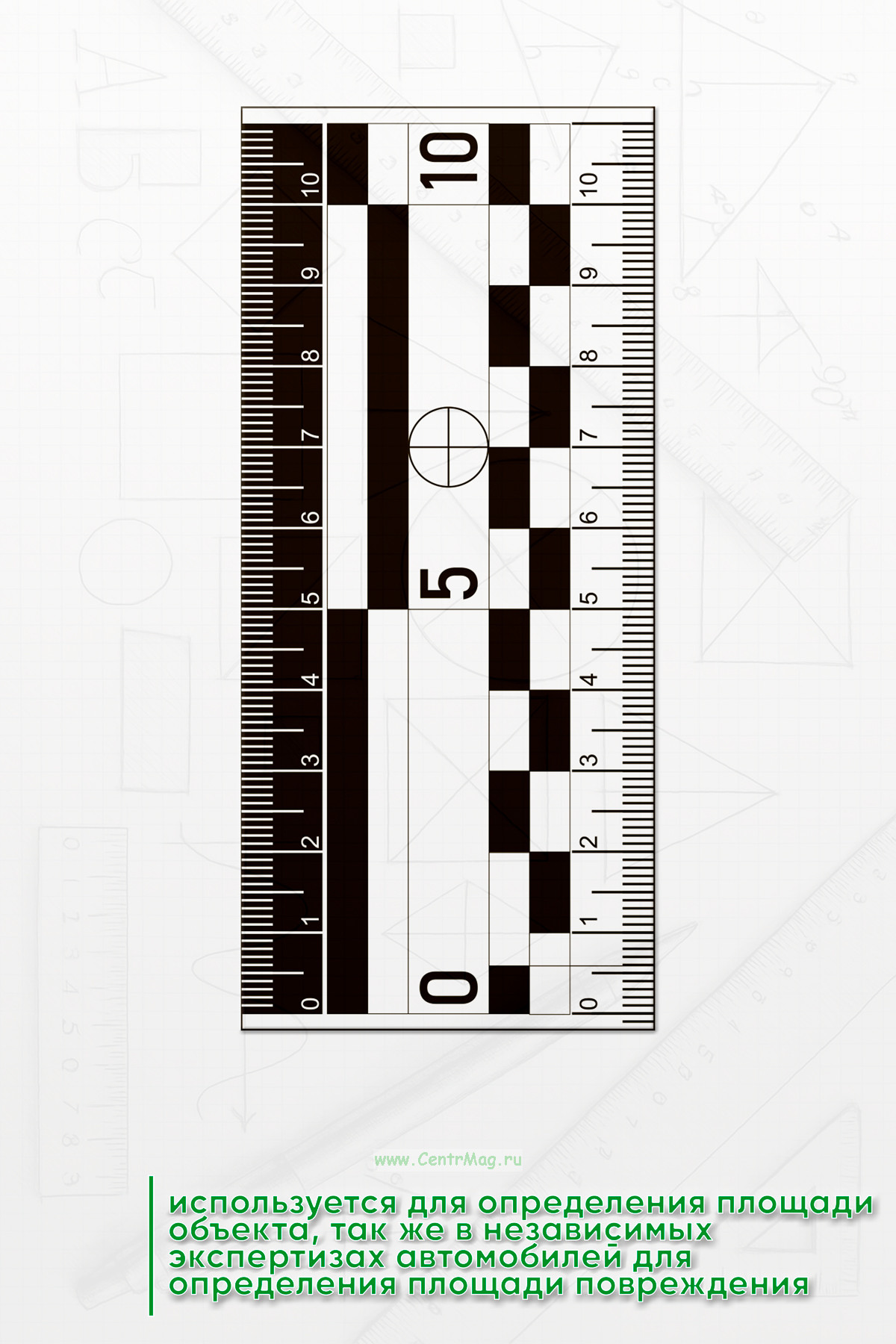 Линейка используется для определения площади объекта, так же в независимых экспертизах автомобилей для определения площади повреждения, страховых компаниях для оценки повреждений, для криминалистов различных служб
