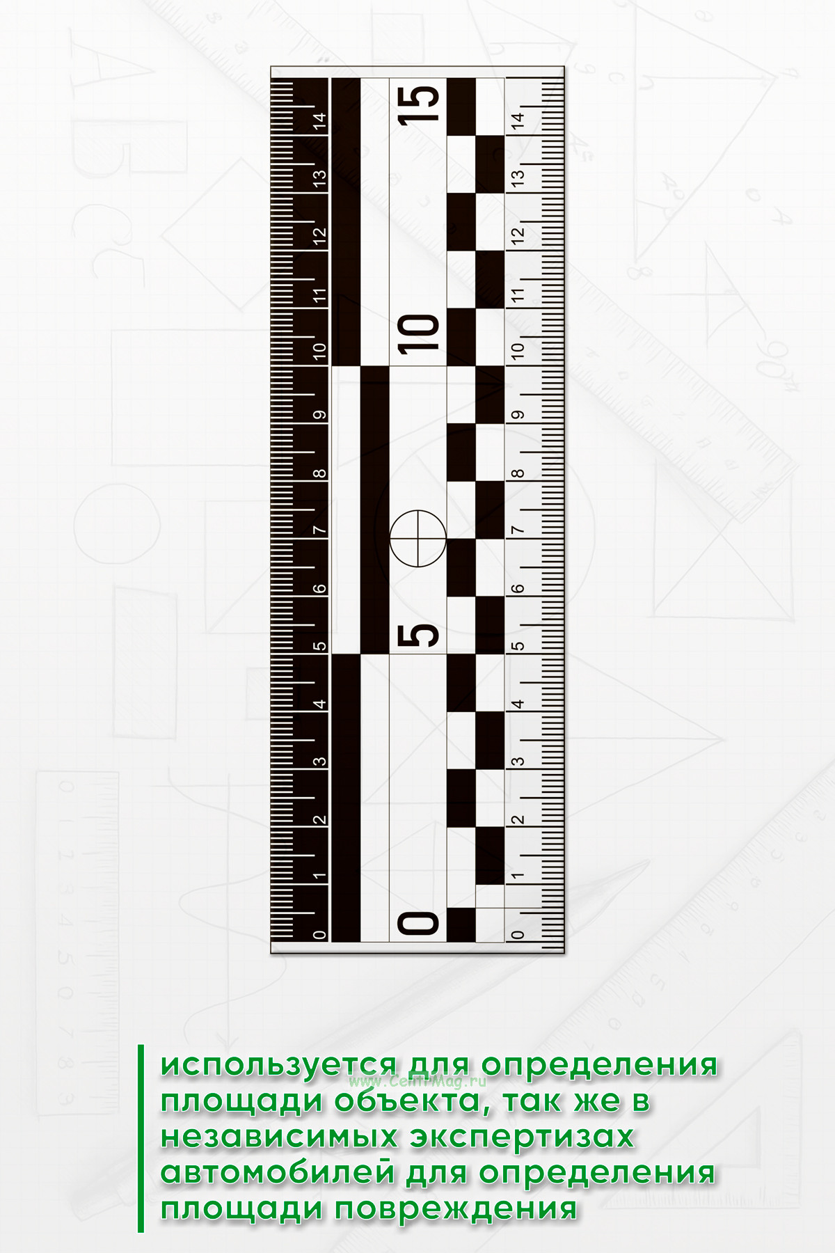 Линейка используется для определения площади объекта, так же в независимых экспертизах автомобилей для определения площади повреждения, страховых компаниях для оценки повреждений, для криминалистов различных служб